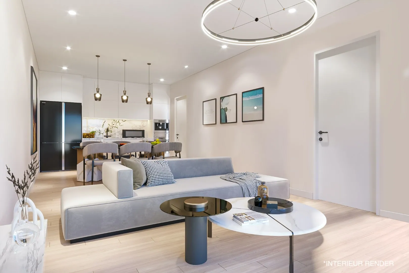 We nemen de lift of de trap naar het appartement Maison J3 op de derde verdieping. Meteen zal duidelijk worden dat een zalige natuurlijke lichtinval hier een zeer belangrijke pijler was tijdens de realisatie van dit trendy appartement. Met een bewoonbare oppervlakte van 63m² is dit meteen dé ideale plek voor jonge starters of voor senioren die enkel nog willen genieten van de groene maar bruisende stadsomgeving.