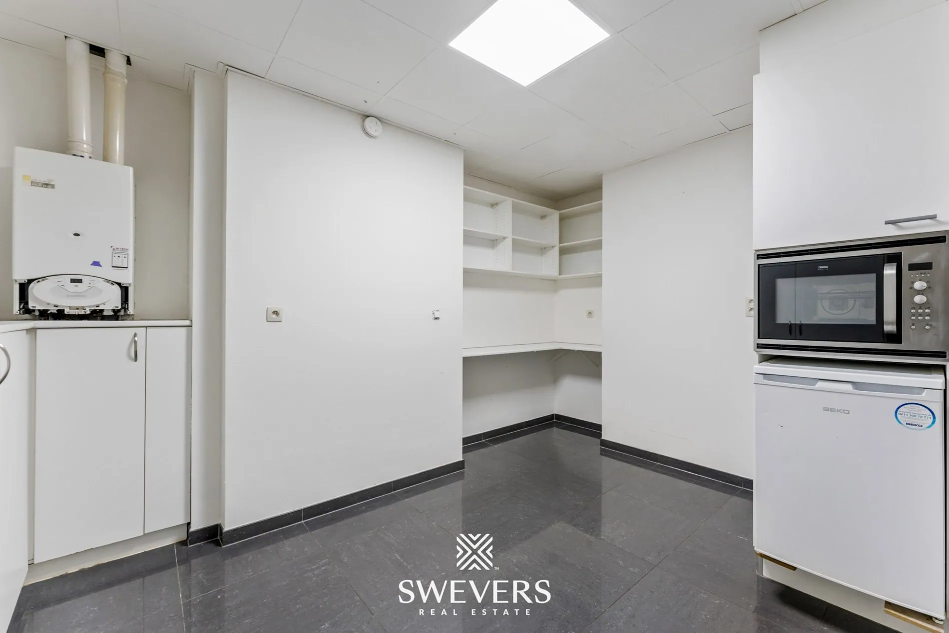 Een extra troef is de aanwezige keuken van 12,6 m². Een praktische voorziening die het dagelijkse comfort van uzelf en uw medewerkers aanzienlijk verhoogt. Even pauzeren, lunchen of bijtanken tijdens een drukke werkdag? Dat kan hier in alle rust en comfort.