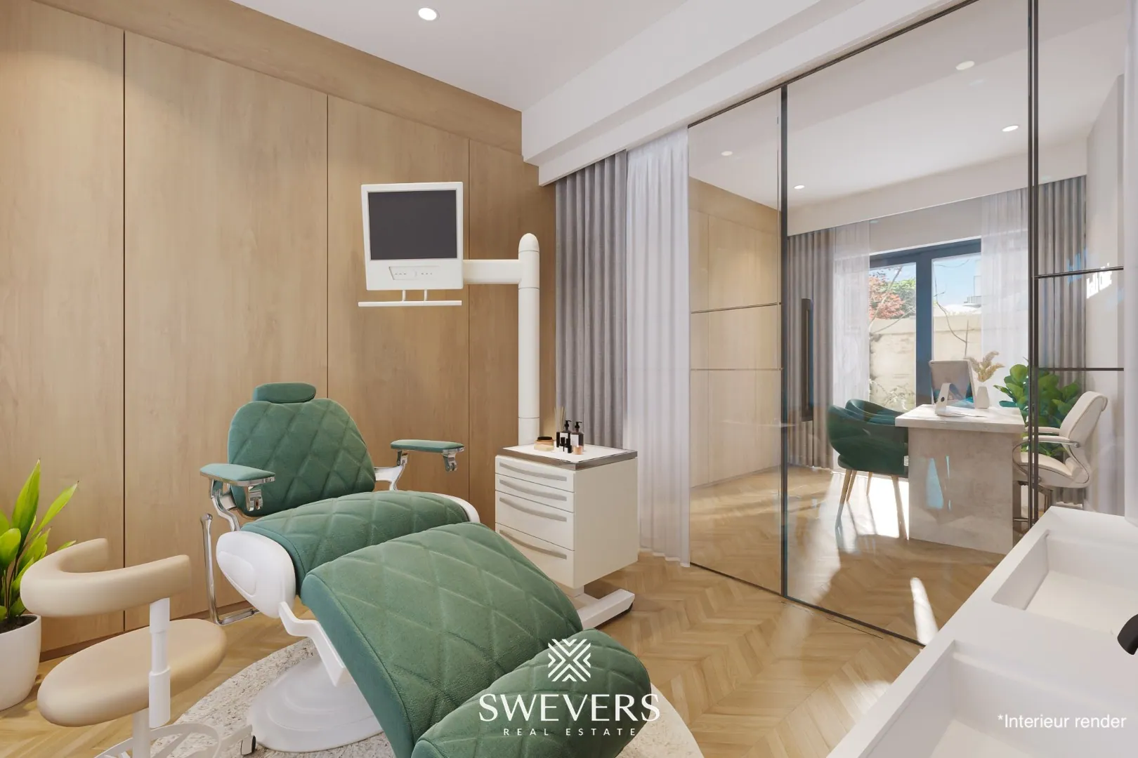 Ondergronds biedt het gebouw ook een kelder van 123,54 m². Deze royale opslagruimte is uiterst geschikt voor het veilig en overzichtelijk bewaren van materiaal, medische dossiers, archieven of apparatuur. Het is een extra troef voor elke praktijk of dienst die nood heeft aan georganiseerde opslag.