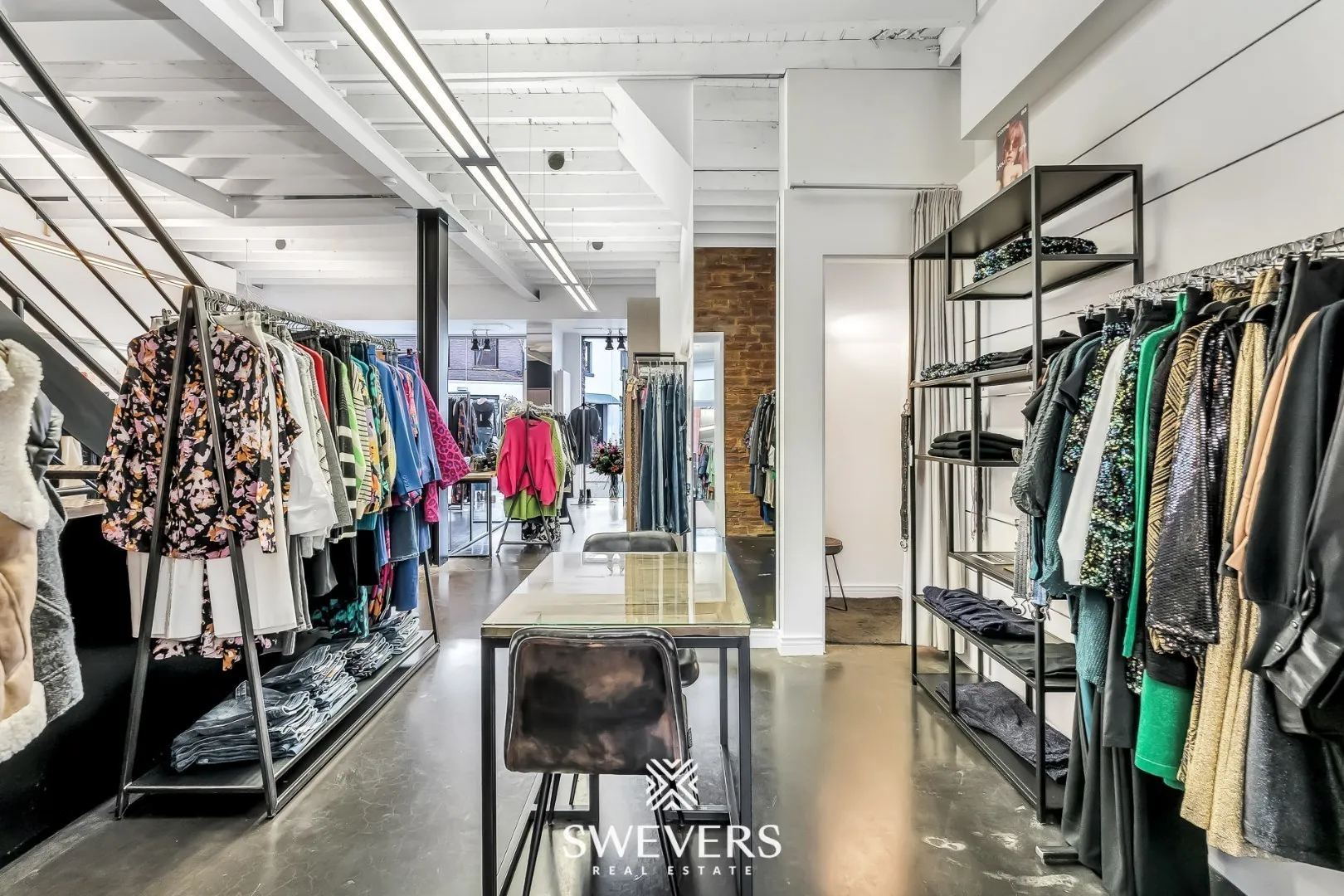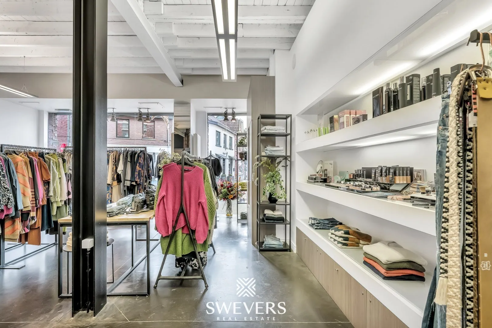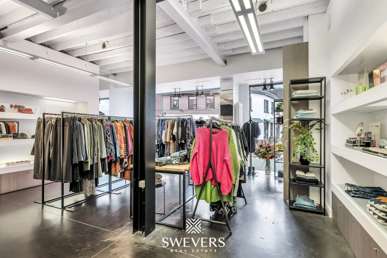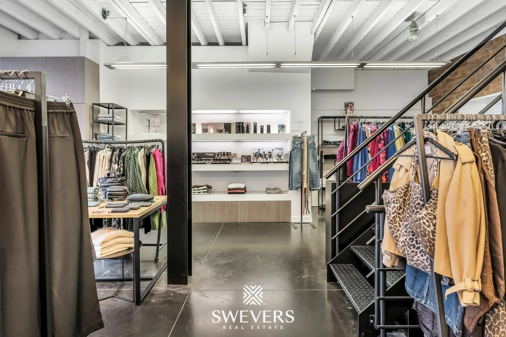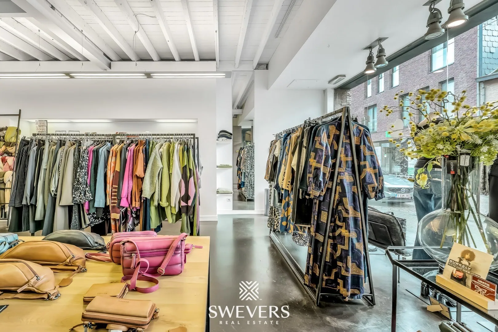 Bij binnenkomst word je verrast door de ruimtelijkheid en de vele mogelijkheden die de handelsruimte te bieden heeft. Het industriële karakter voegt een subtiele touch toe, waardoor de ruimte een karaktervolle uitstraling krijgt. Of je nu droomt van een gezellig koffiehuis, een kapperszaak of het voortzetten van een eigen kledingwinkel, de opties liggen voor het grijpen. Centraal bevindt zich een hal die toegang geeft tot een kitchenette en een toilet. Achteraan sluit het geheel aan op een zeer ruime opslagruimte, ideaal voor voorraad of logistiek gebruik.