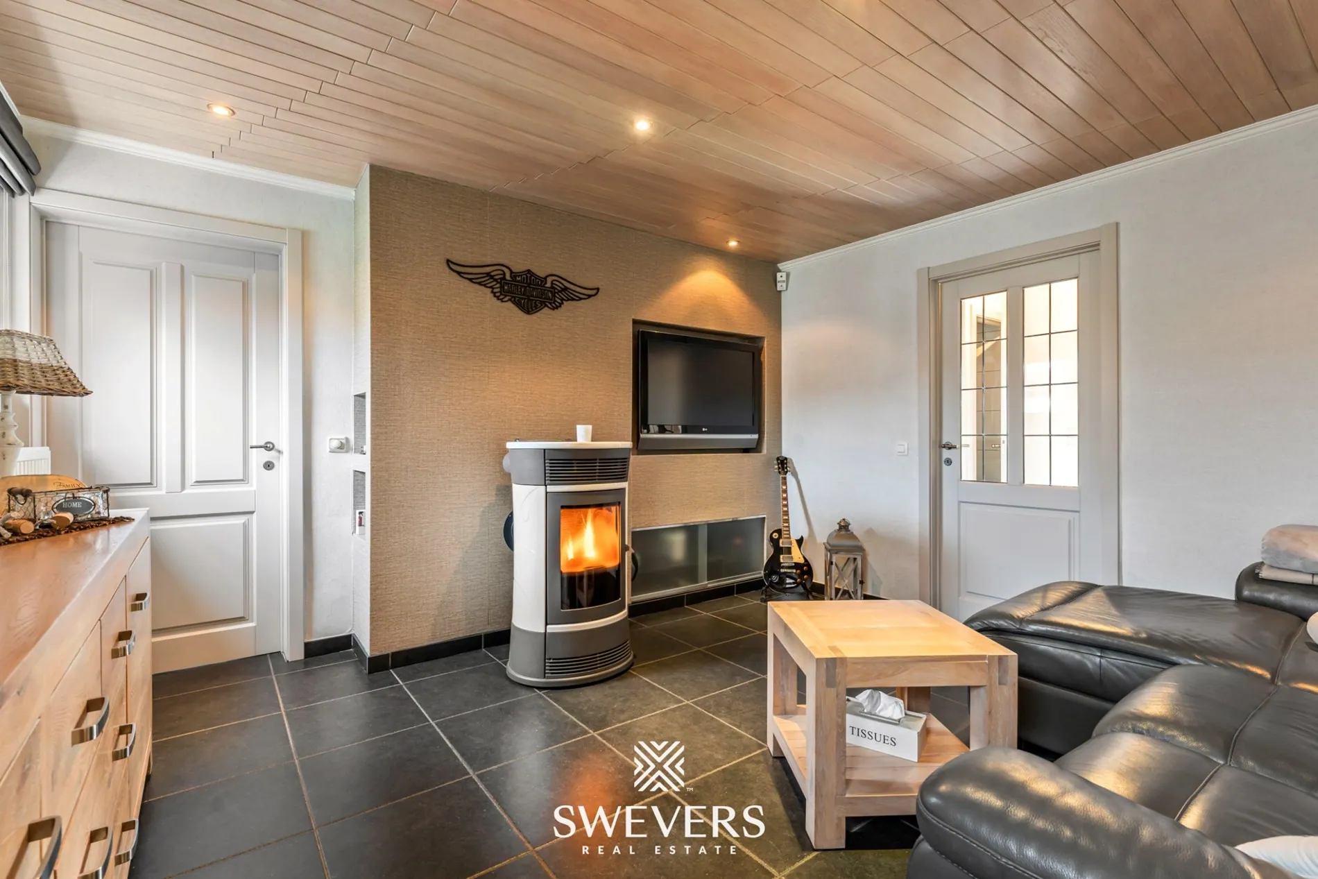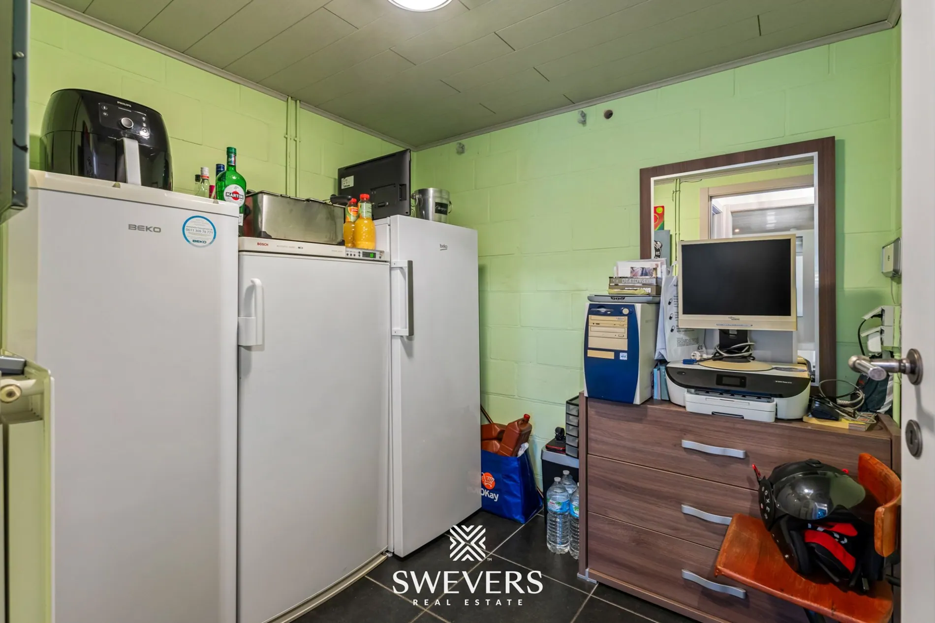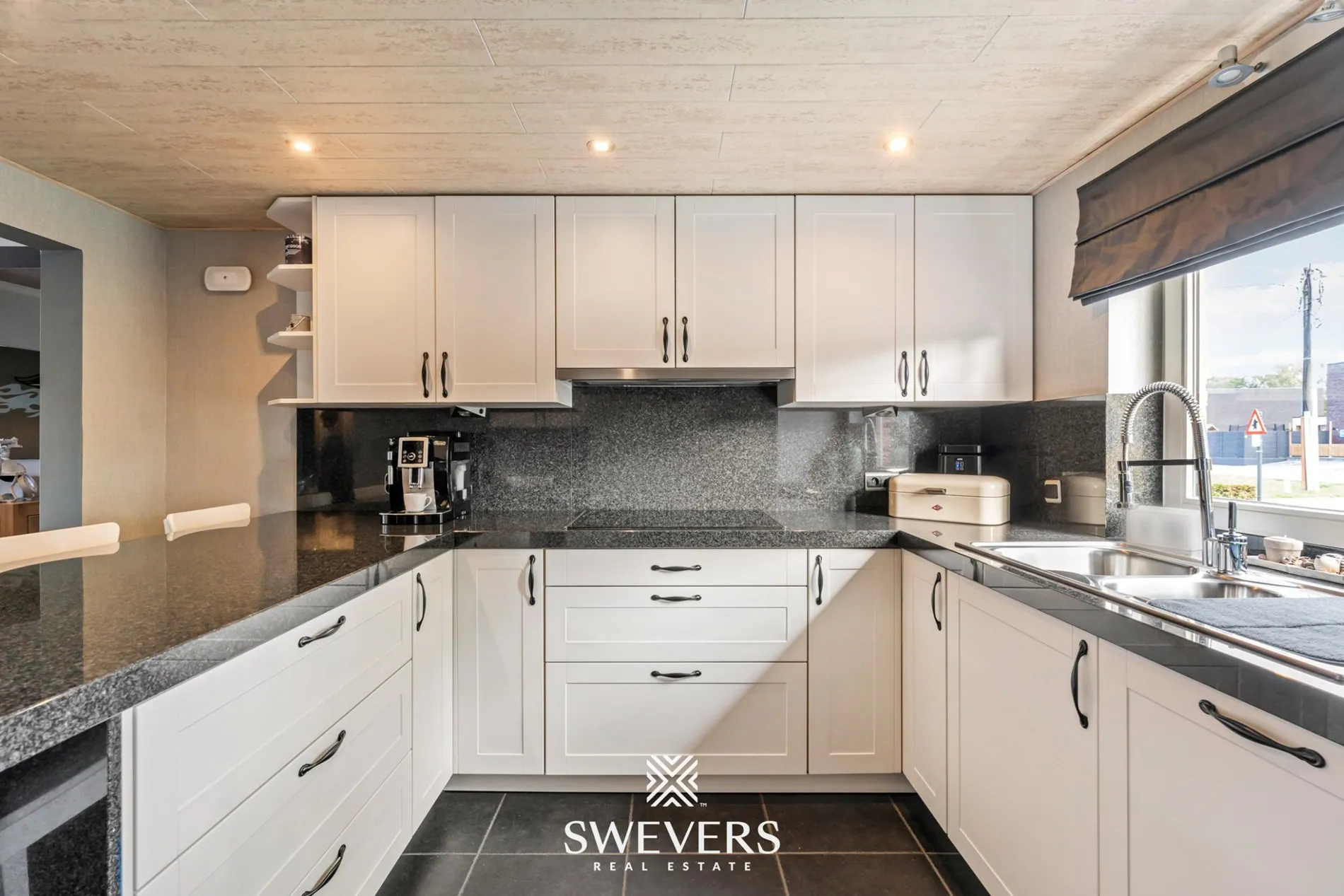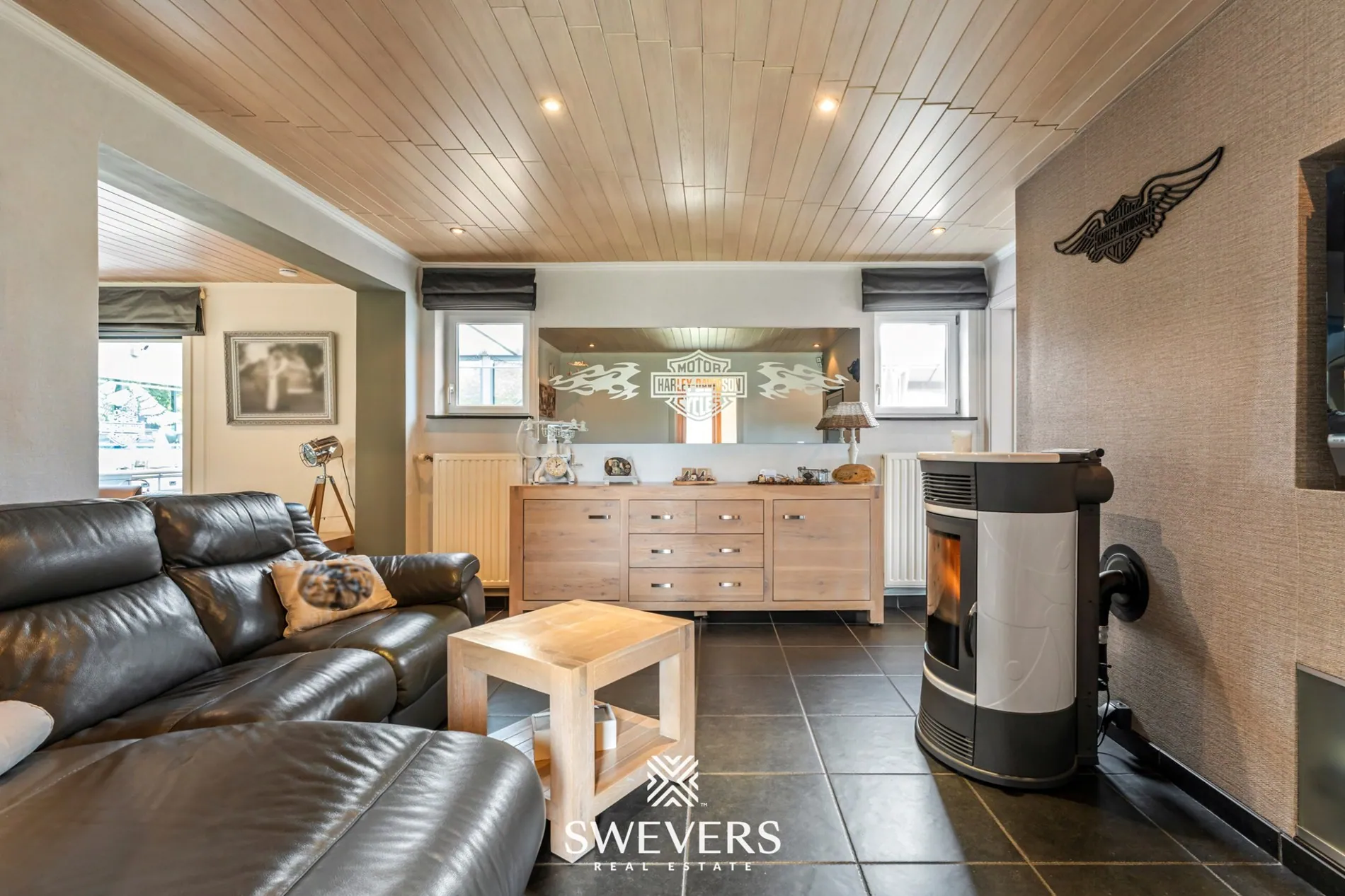 De leefruimte van 35,67 m² is centraal gelegen en vormt het hart van de woning. De open en rechthoekige indeling zorgt voor een vlotte inrichting met natuurlijke lichtinval via de grote ramen aan de verandazijde. Deze ruimte sluit naadloos aan op de keuken van 7,05 m², die compact maar efficiënt werd ingericht.