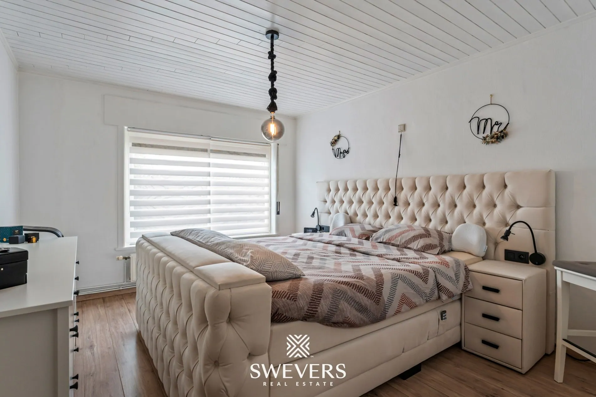 Er zijn twee slaapkamers van respectievelijk 13,24 m² en 10,28 m².Beide ruimtes zijn voorzien van rolluiken. De kamers zijn geschikt als volwaardige slaapvertrekken, maar kunnen ook als bureau of hobbyruimte worden ingericht, afhankelijk van de noden van de bewoners. Ook is er een mogelijkheid tot een derde slaapkamer aan de achterzijde van de woning.