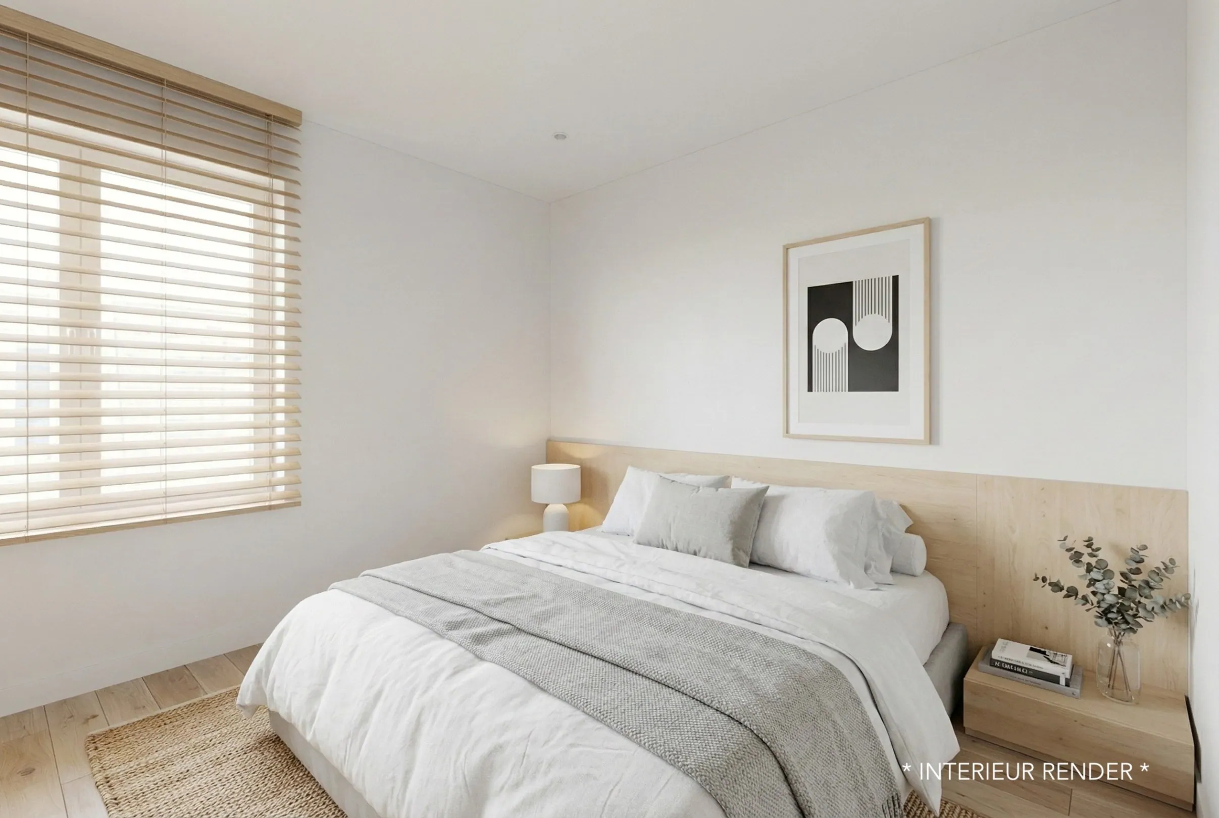 De slaapkamer van 15,22 m² is een oase van rust. Hier start je de dag ontspannen en eindig je ze in alle sereniteit. Er is voldoende ruimte voor een groot bed, kleerkast en extra opbergmeubilair. Dankzij de rustige ligging aan de achterzijde geniet je hier van een ongestoorde nachtrust, midden in de stad.