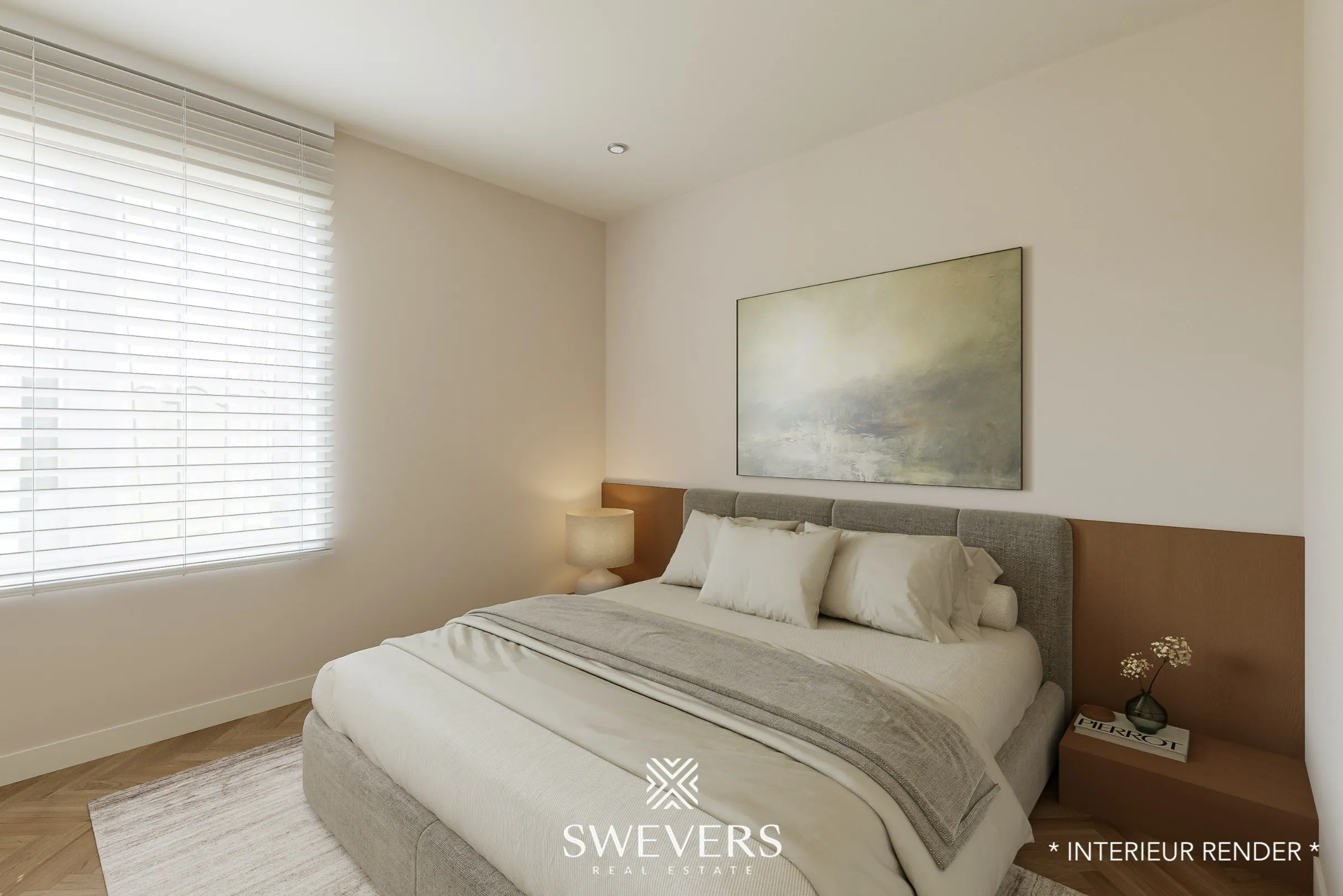 Verder zijn er twee ruime slaapkamers van respectievelijk 15,75 m² en 11,55 m². Beide kamers bieden voldoende plaats voor een tweepersoonsbed en kast, en zijn dankzij hun lichtinval bijzonder aangenaam. De badkamer is functioneel uitgerust en biedt al het nodige comfort.