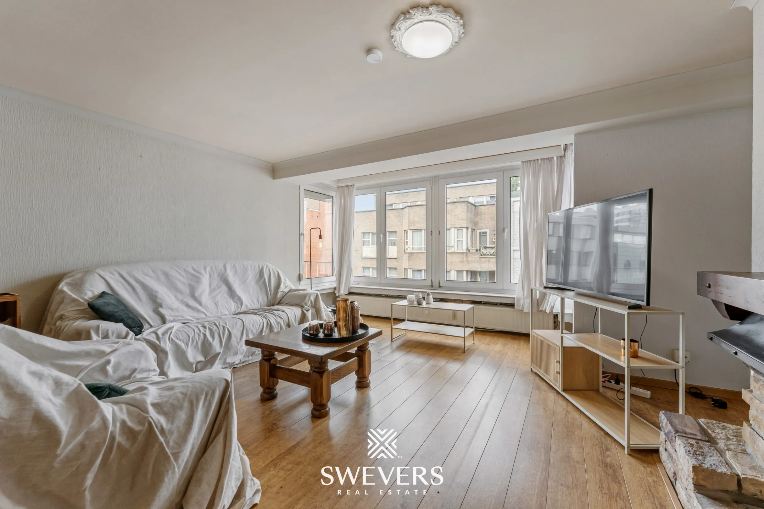 We nemen de lift of de trap naar de vierde verdieping. Van zodra u binnenstapt, wordt het meteen duidelijk: licht en ruimte staan hier centraal. De royale leefruimte van maar liefst 41,93 m² baadt in natuurlijk daglicht dankzij de grote raampartijen. Dit is dé plek waar u tot rust komt, gasten ontvangt en volop geniet van het leven in het hart van de stad.