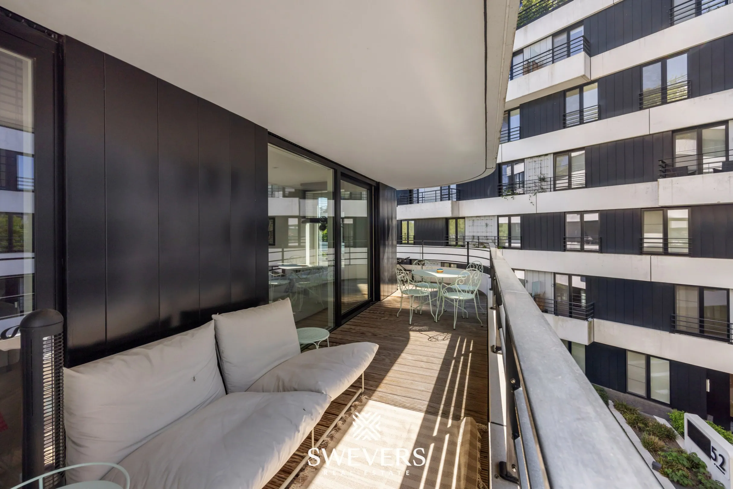 Een van de sterke troeven zijn de twee terrassen. Het grote terras van 28 m² sluit aan op de leefruimte en biedt voldoende plaats voor een eettafel en loungehoek. Het tweede terras van 4 m² is bereikbaar via de slaapkamer. Hier geniet je van extra buitenruimte en privacy.