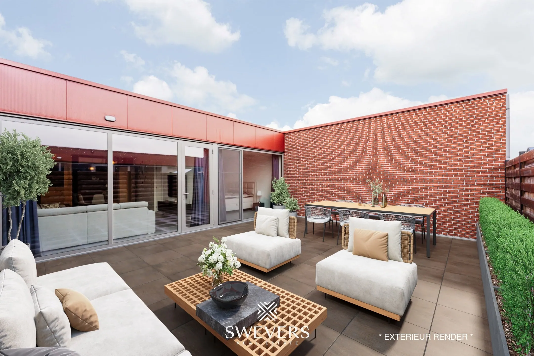 Een absolute troef is het ruime terras van maar liefst 46 m². Dit biedt tal van mogelijkheden. Denk aan een grote buitentafel, een loungehoek of zelfs extra groenvoorziening. Zodra de temperaturen stijgen, verplaatst uw leefruimte zich als het ware naar buiten. Hier kan u volop genieten van lange zomeravonden.