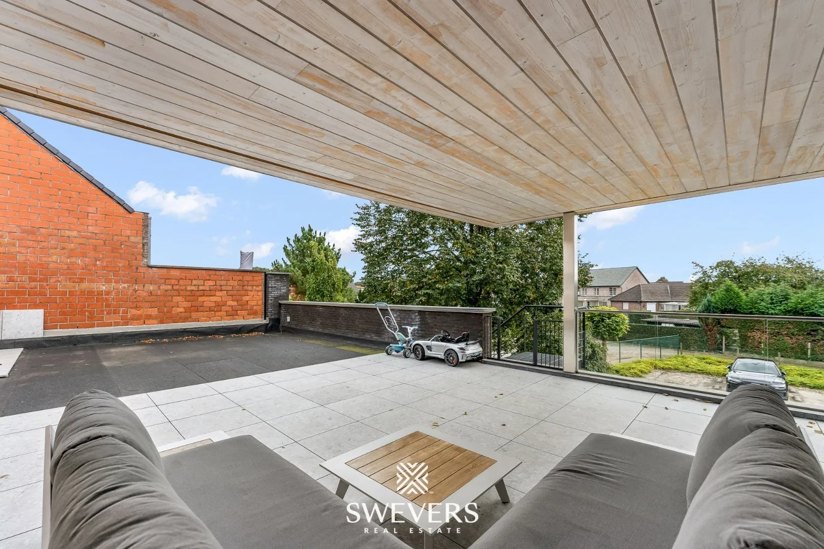Een van de absolute troeven van dit appartement is het ruime terras van 22 m². De perfecte plek om 's zomers te ontspannen of gezellig buiten te eten. Dankzij de ligging op het zuidwesten kunt u hier tot in de late namiddag van de zon genieten. Het terras biedt voldoende privacy en is groot genoeg voor een comfortabele tuinset of ligstoelen.