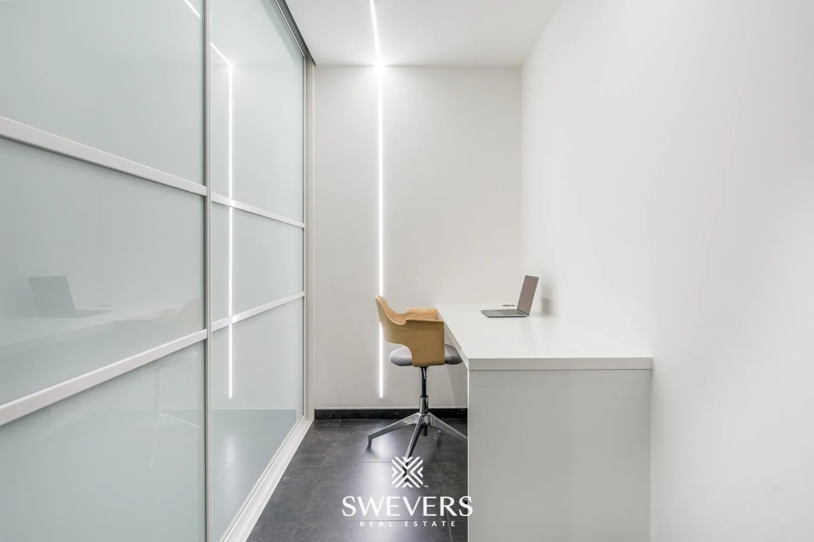 Het appartement beschikt over drie slaapkamers, allemaal afgewerkt met inbouwkasten en zonnewering in de grootste kamer. De master bedroom heeft een oppervlakte van maar liefst 20 m², wat zorgt voor voldoende ruimte voor een tweepersoonsbed en extra meubels. De andere twee slaapkamers meten respectievelijk 17,85 m² en 11,50 m² en kunnen perfect dienen als kinderkamer, gastenkamer of bureau.