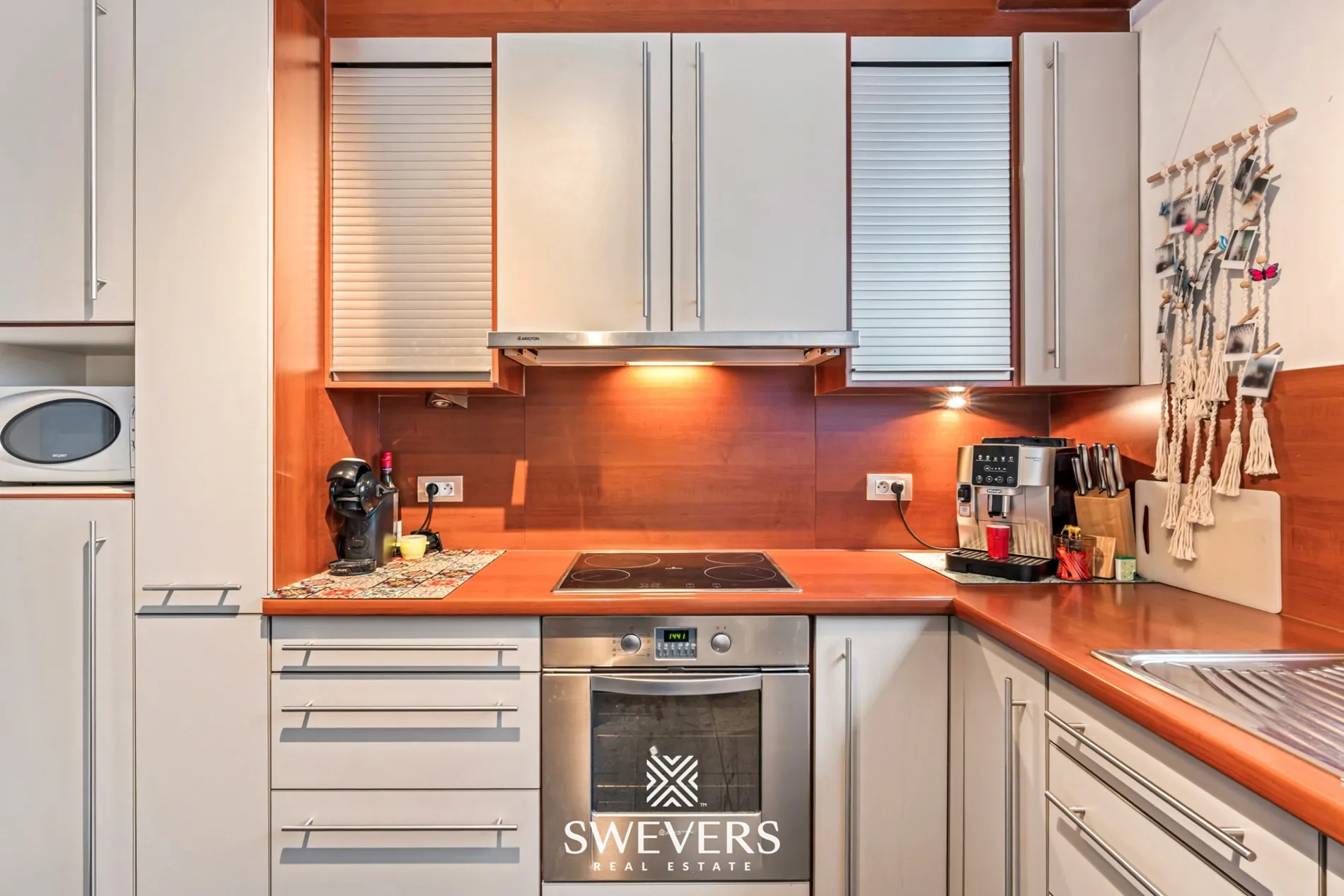Aansluitend bevindt zich de functionele en hedendaagse keuken van 10,51 m². Hier kookt u met plezier, omringd door praktische werkruimte en een vlotte indeling. Dankzij de nieuwe gasketel uit 2019 geniet u bovendien van efficiënte en betrouwbare verwarming. Het EPC-label B bevestigt de energiezuinige prestaties van deze woning. Bovendien is er airconditioning aanwezig, wat het wooncomfort tijdens warme zomerdagen aanzienlijk verhoogt.