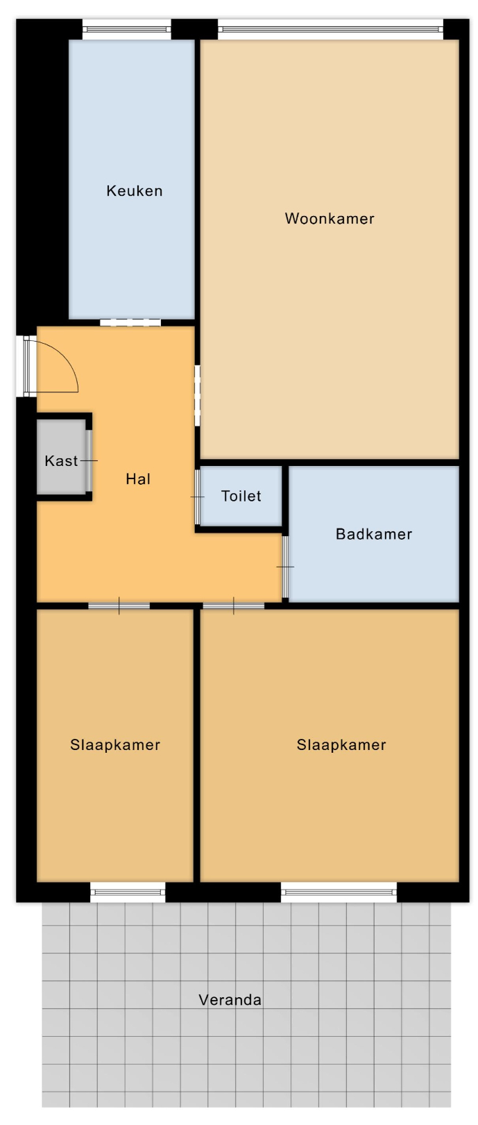 De inkomhal geeft toegang tot de verschillende leefruimtes. De indeling is functioneel en overzichtelijk. Het aparte gastentoilet bevindt zich centraal in het appartement. Vanuit de hal bereikt u zowel de leefruimte als de nachthal.
