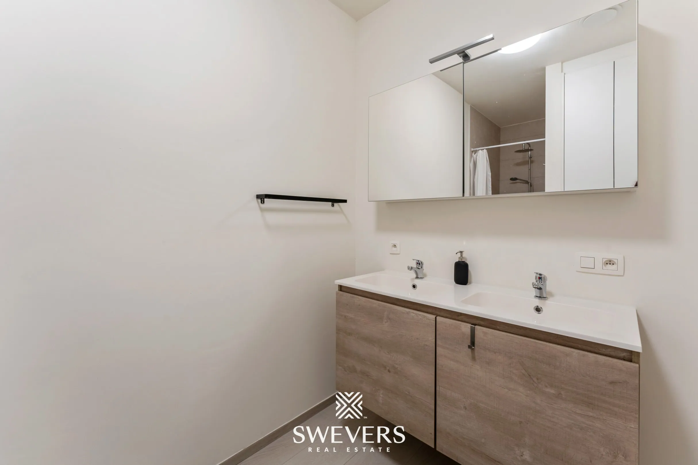 De twee slaapkamers, respectievelijk 13,36 m² en 10,59 m², zijn afgewerkt met oog voor rust, privacy en functionaliteit. De grootste kamer beschikt over een kledingkast op maat en beide kamers zijn voorzien van elektrische rolluiken. De badkamer straalt dezelfde moderne lijn uit en biedt je een ruime inloopdouche en kwalitatieve materialen die elke ochtendroutine een luxueuze toets geven. Het afzonderlijke toilet is eveneens voorzien van maatkasten.