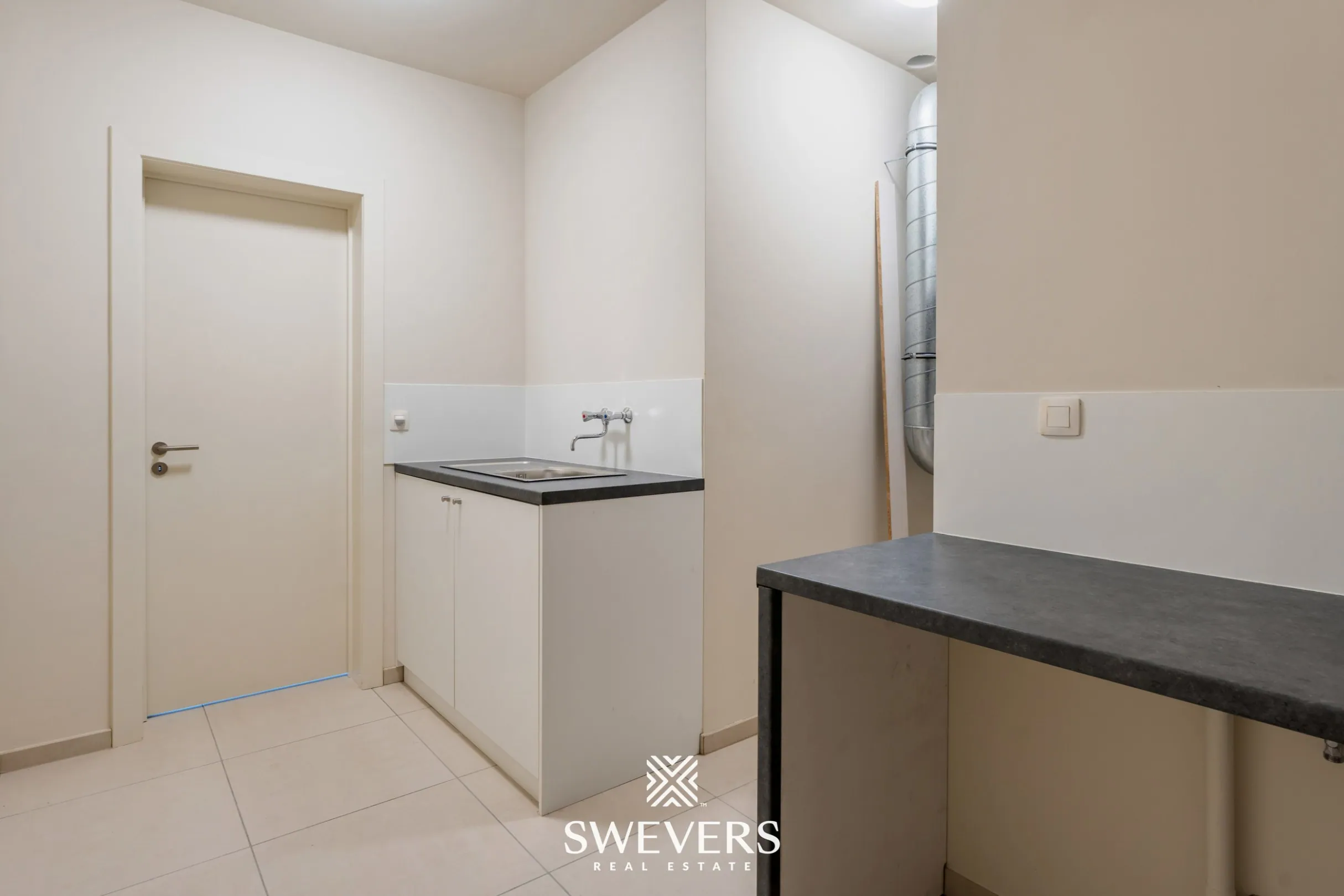 Doorheen het volledige appartement zijn er maatkasten voorzien. Vlakbij de keuken is ook nog een ruime wasberging om een en ander te kunnen opbergen en voor het plaatsen van wasmachine en droogkast.