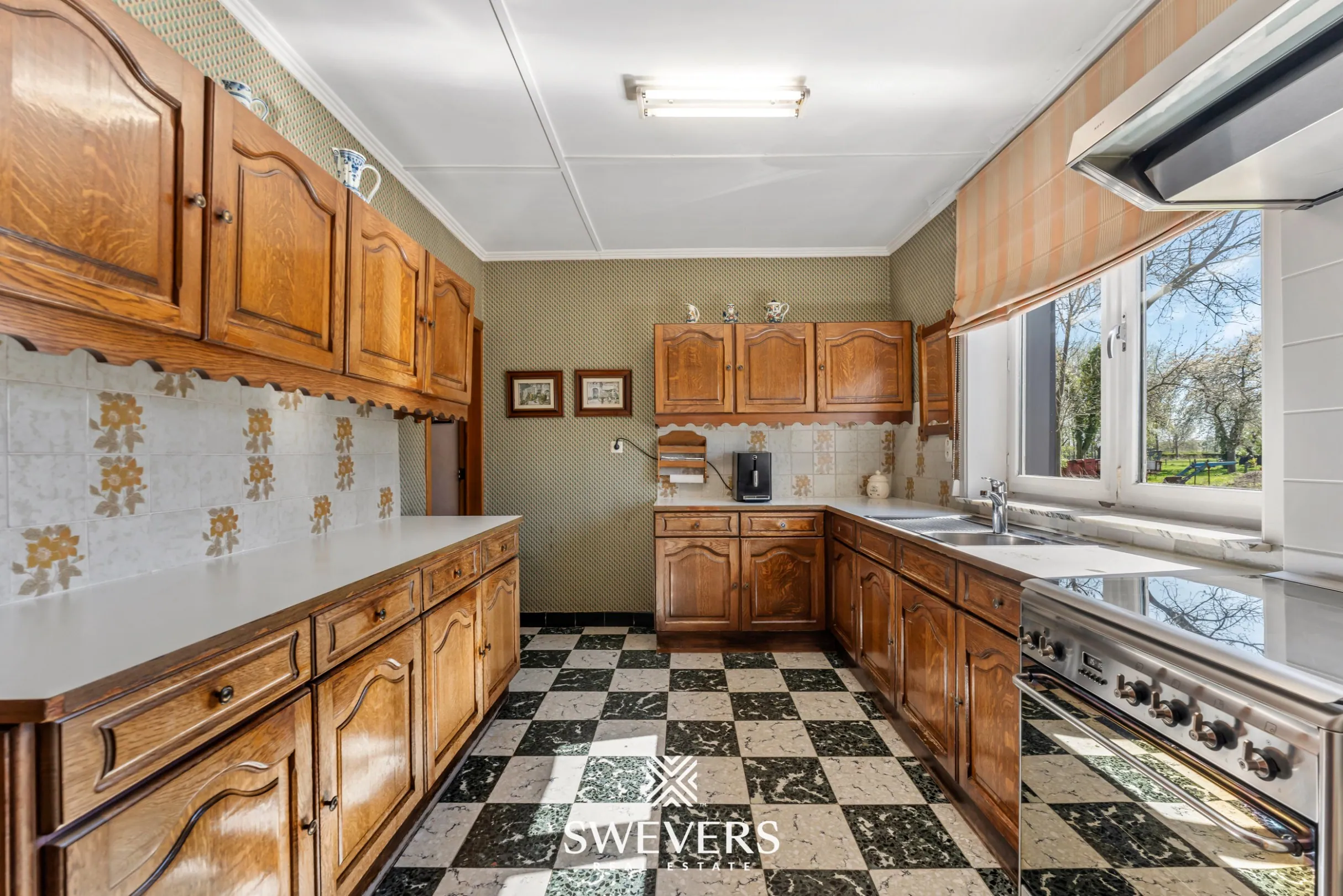 Verscholen achter een dubbele toegangspoort, bevindt zich deze authentieke hoeve met weiland, gelegen in de Dorpsstraat 124 te Melkwezer, biedt een unieke kans voor wie een woning volledig naar eigen smaak wil vormgeven.