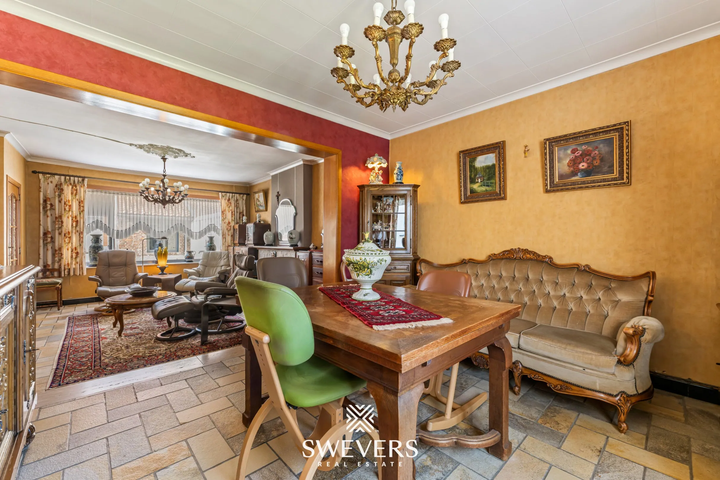 Op het gelijkvloers bevindt zich een woonkamer van 32,17 m² die aansluit op de eetkamer van 17 m². Samen vormen zij een aangename en lichtrijke leefruimte met potentieel tot open inrichting. De keuken van 13,02 m² sluit hierop aan en biedt zicht op het omliggende groen.