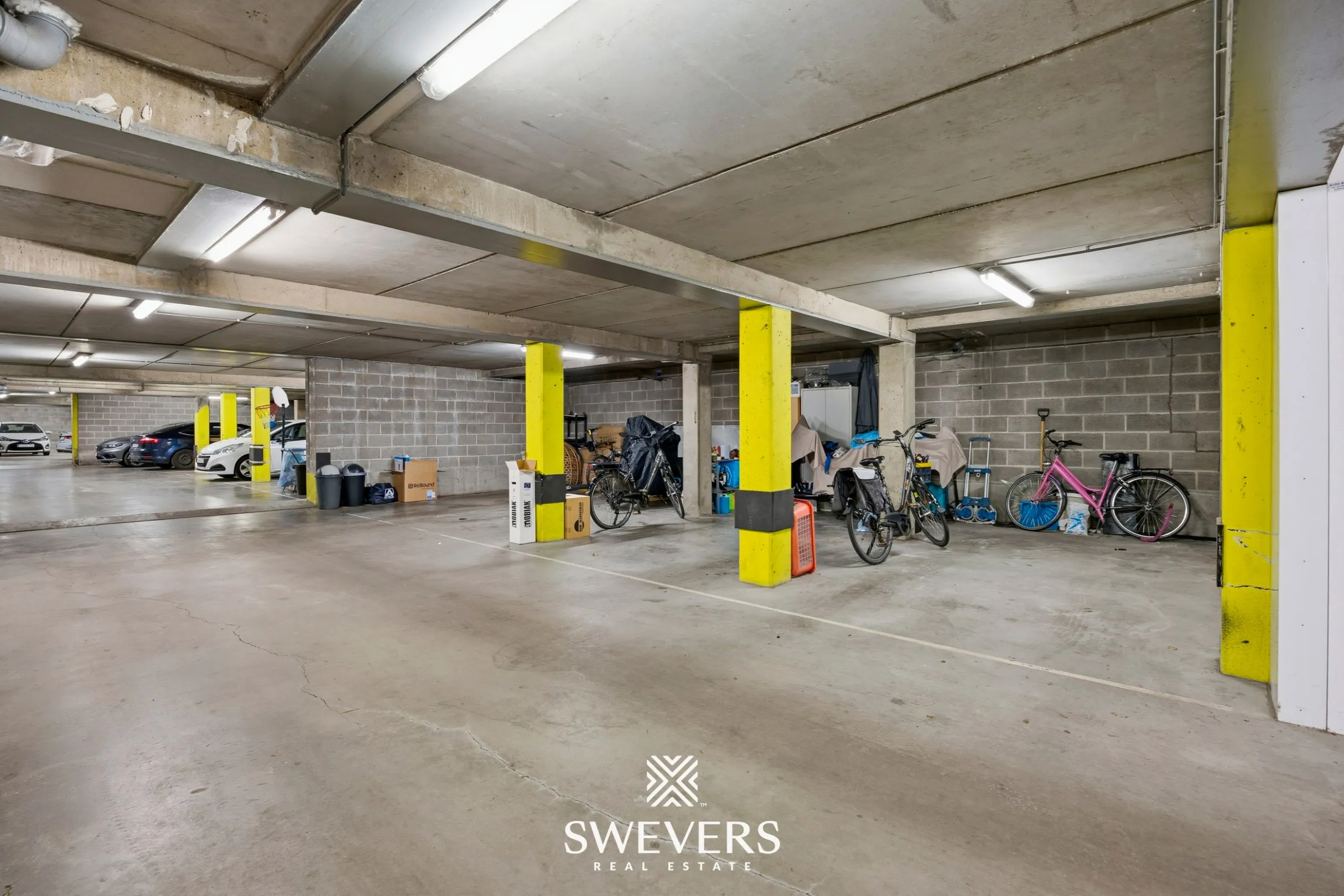 Extra comfort vind je in de privatieve staanplaats in de parkeerkelder van 14 m². Bezoekers kunnen bovendien gratis parkeren aan de achterzijde van het gebouw. Ook de grote gemeenschappelijke tuin (het bos) van maar liefst 1.075 m², eveneens zuidoost georiënteerd, is een absolute meerwaarde. Een groene oase waar je even kan ontsnappen aan de drukte.