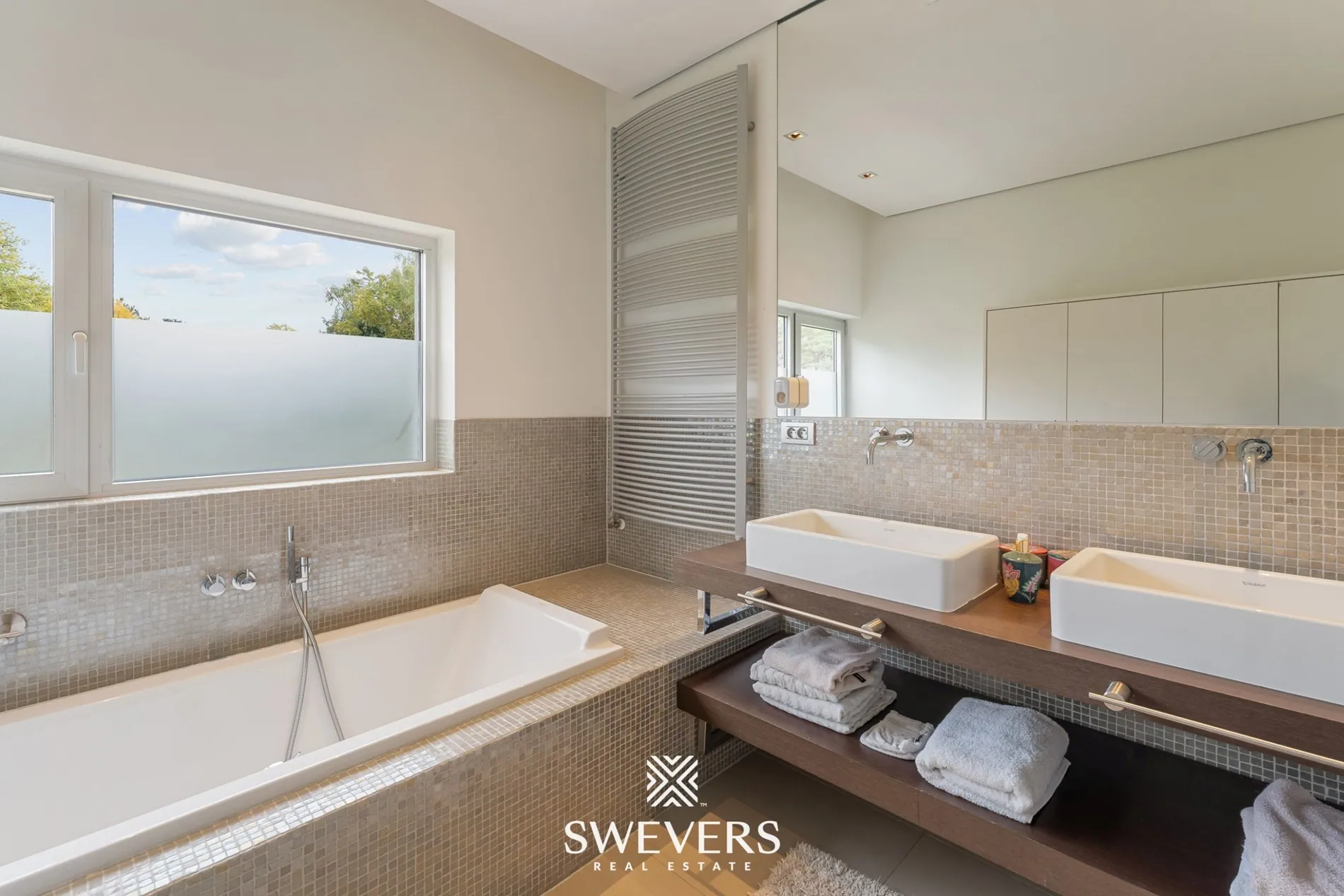 Op de verdieping ontdek je vier royale slaapkamers, elk met hun eigen karakter. De master bedroom is een heus privéverblijf met dressing en een eigen badkamer. De overige kamers zijn ruim, licht en veelzijdig – ideaal voor kinderen, gasten of als thuiskantoor. In totaal zijn er drie smaakvolle badkamers, elk met oog voor detail en comfort.