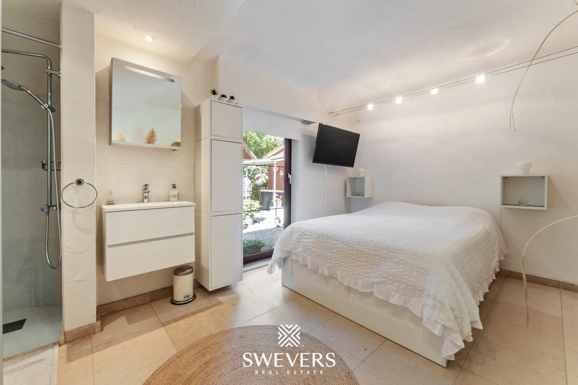 De woning beschikt over vier gelijkvloerse slaapkamers, elk met hun eigen karakter. De master van 18,55 m² is een oase van rust, terwijl de andere kamers, met oppervlaktes van 18,48 m², 13,86 m² en 9 m², zich flexibel laten inrichten als kinderkamer, logeerkamer of inspirerende werkplek. Daarbij zorgen drie luxueuze badkamers ervoor dat iedereen zich in alle comfort kan klaarmaken, zonder dat er ooit sprake is van ochtenddrukte.