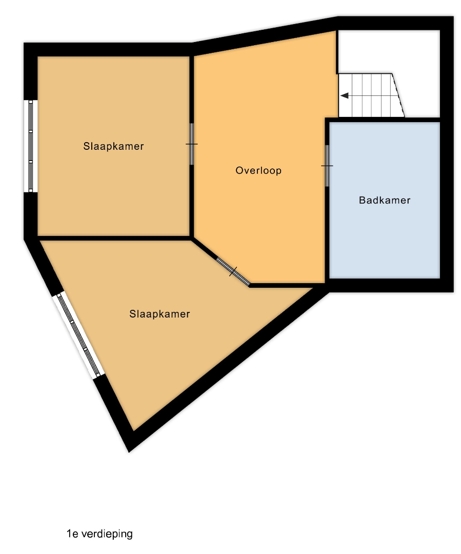 Op de eerste verdieping bevindt zich een bescheiden woongedeelte. Hier treft u twee (slaap)kamers van respectievelijk 13 m² en 20 m² en een badkamer. Hoewel deze verdieping totaal te renoveren is, biedt het mogelijkheden.