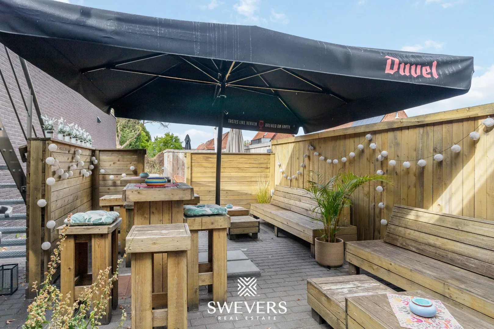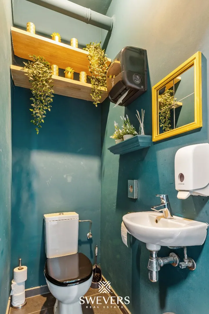 Een absolute troef is het terras met tuinzone dat grenst aan de achterzijde (+50 m²). Dit buitengedeelte geeft extra capaciteit.