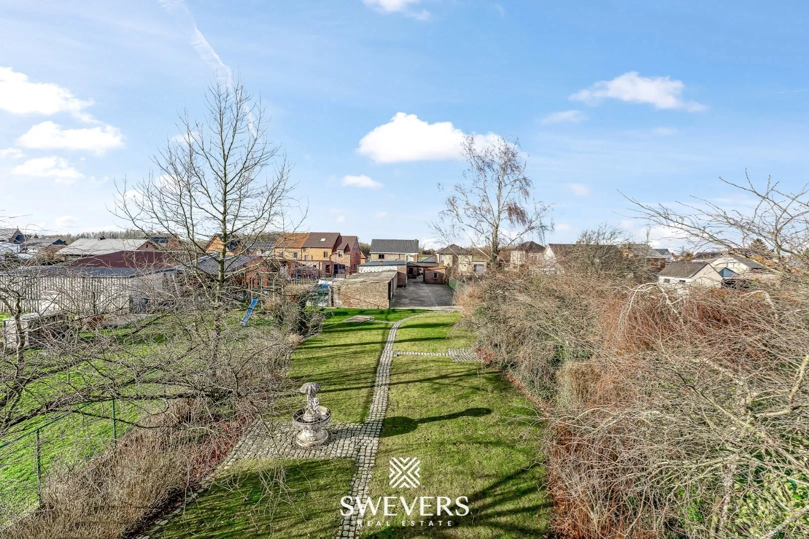 Achteraan het perceel bevinden zich twee garages en extra bergingen, die indien gewenst eenvoudig kunnen worden ingericht als stallen voor paarden, pony’s of andere dieren. De eigendom leent zich dus uitstekend voor dierenliefhebbers of wie graag wat vee aan huis houdt.