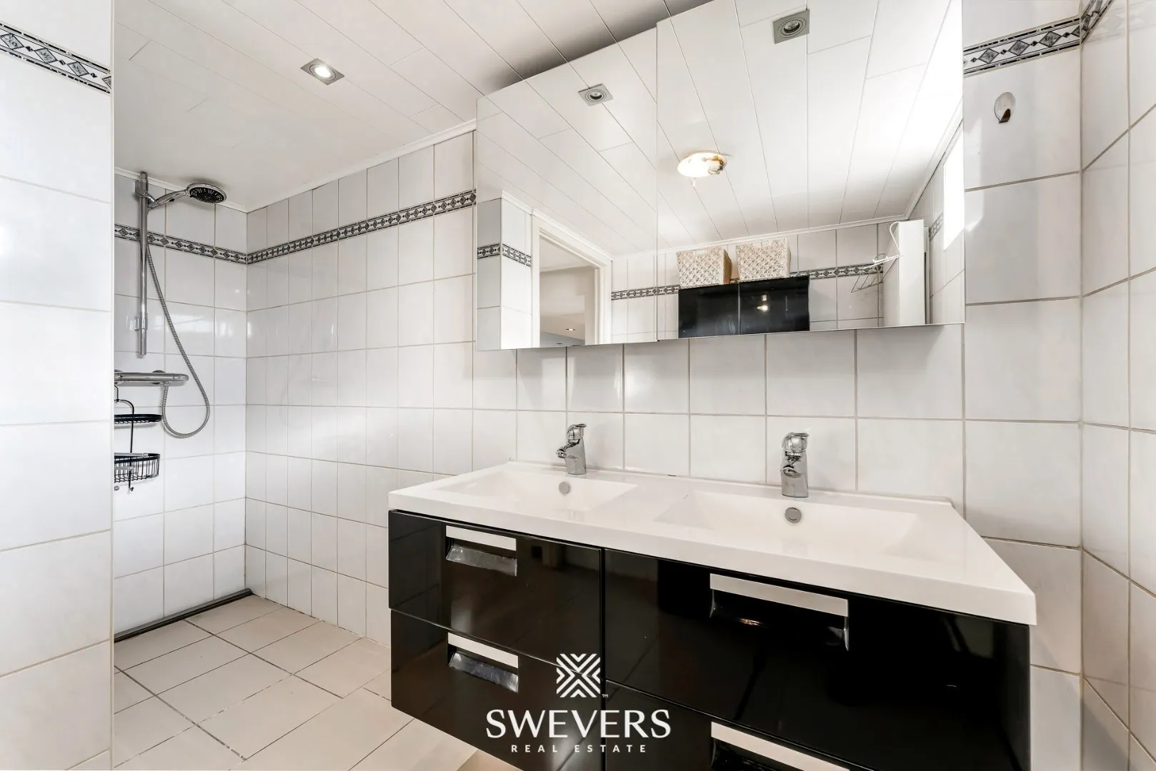 Op de eerste verdieping bevindt zich een volledig appartement van 78 m², bereikbaar via een aparte ingang. Dit appartement is ideaal voor verhuur, een kangoeroewoning, of gewoon als extra ruimte voor een familielid. De lichte woonkamer (20 m²) sluit aan op een praktische keuken (9,18 m²). Verder vind je hier twee mooie slaapkamers (11,7 en 16,4 m²) en een eigen badkamer – alles wat nodig is voor comfortabel wonen.