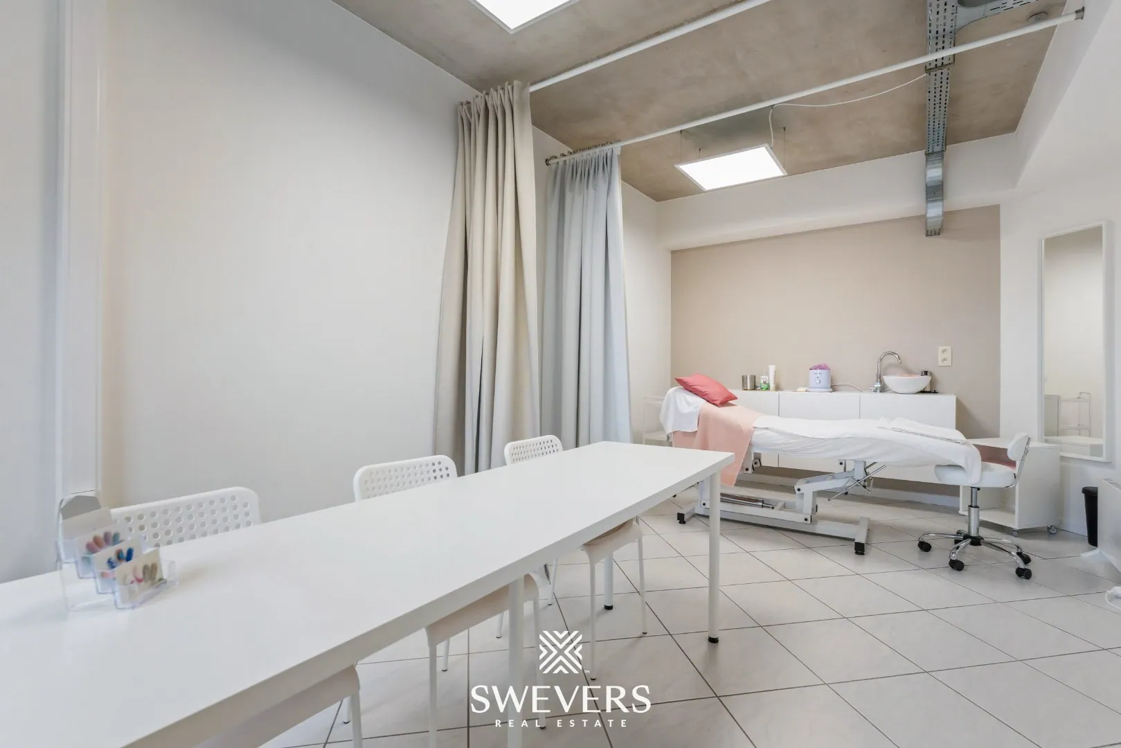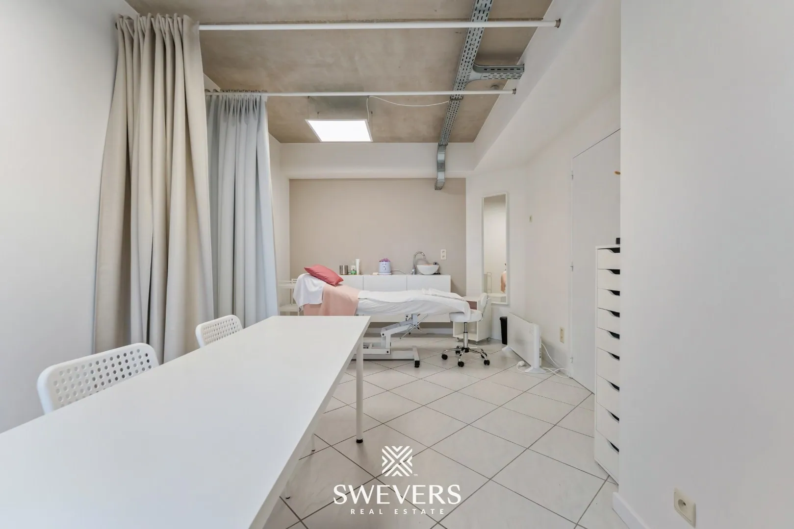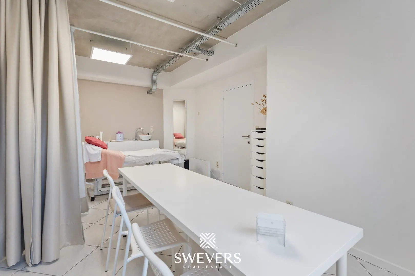 Er bevinden zich twee afzonderlijke praktijkruimtes van respectievelijk 19,54 m² en 23,79 m². Elk van deze ruimtes is voorzien van voldoende lichtinval en biedt de nodige privacy. Ideaal voor wie in duo werkt, of verschillende diensten aanbiedt. Ze kunnen evengoed fungeren als kantoor, behandelruimte of vergaderzaal. De flexibele indeling laat meerdere invullingen toe.