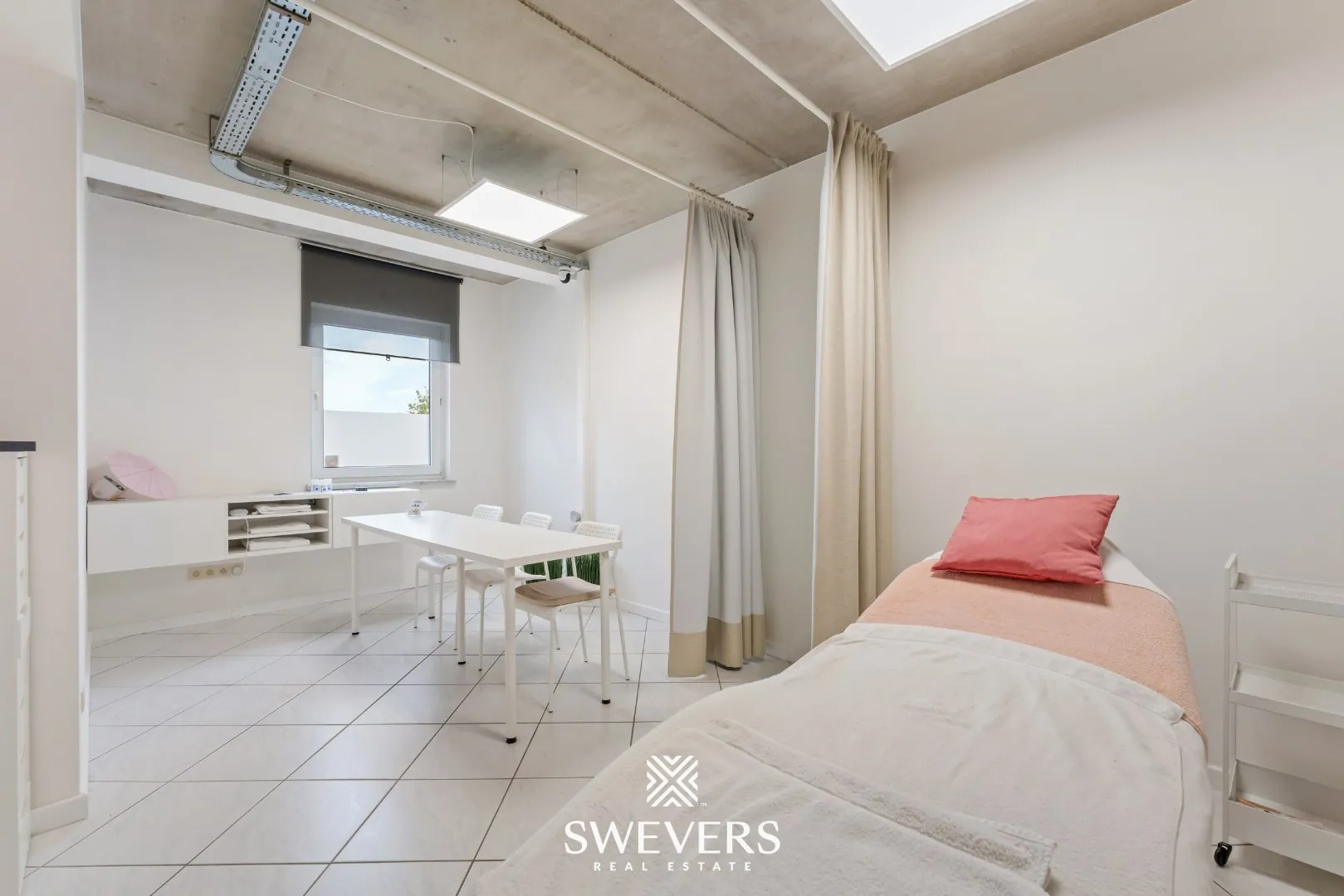 Een compacte maar efficiënte keuken van 10,68 m² sluit aan op de praktijkzones. Deze is praktisch uitgerust en vormt een aangename plek voor korte pauzes of het voorbereiden van kleine maaltijden.