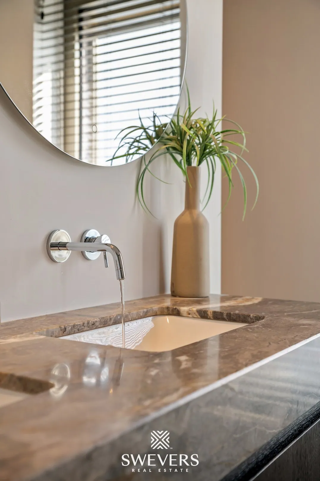 Airconditioning is geïntegreerd in de muren en plafonds, wat het strakke karakter versterkt.