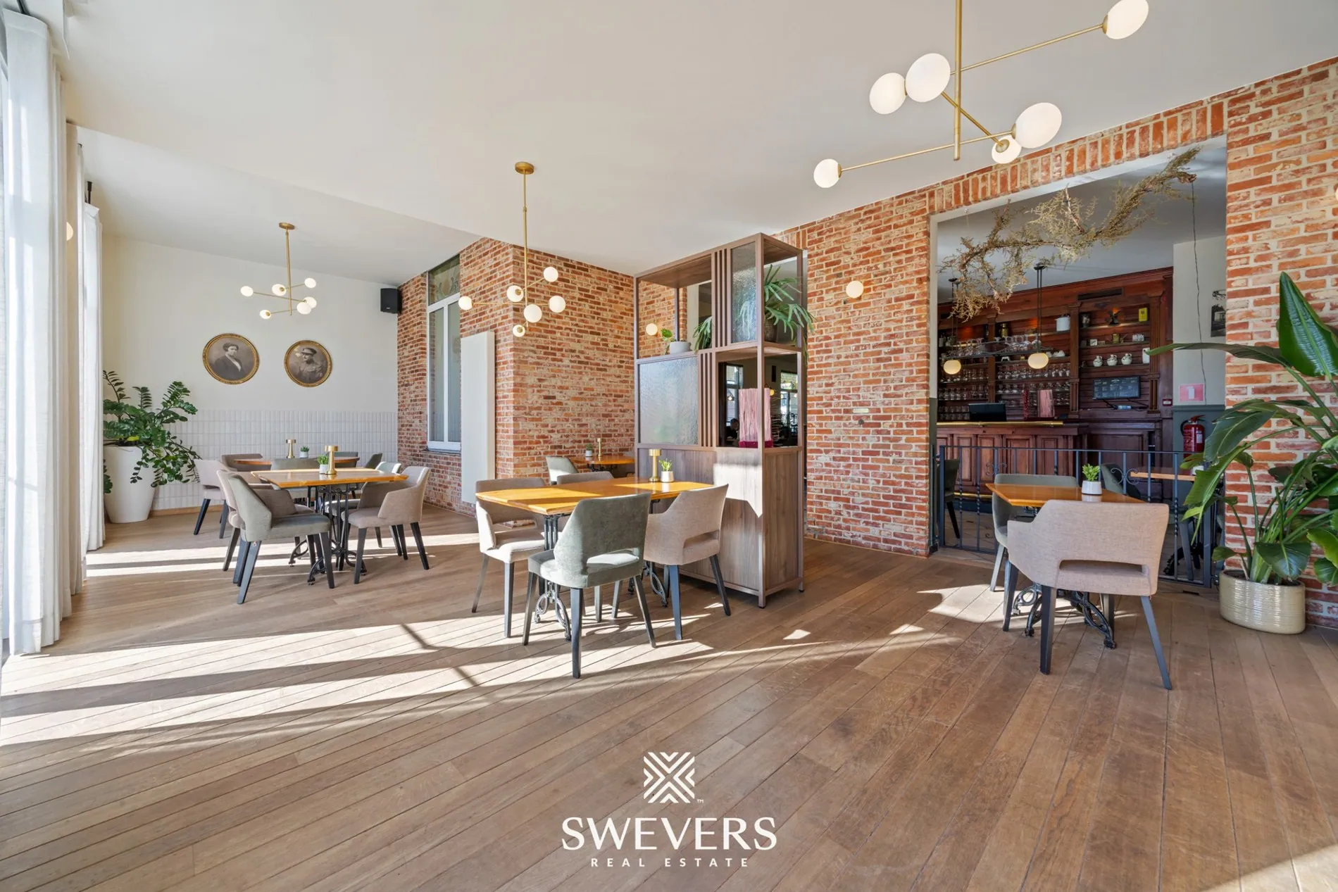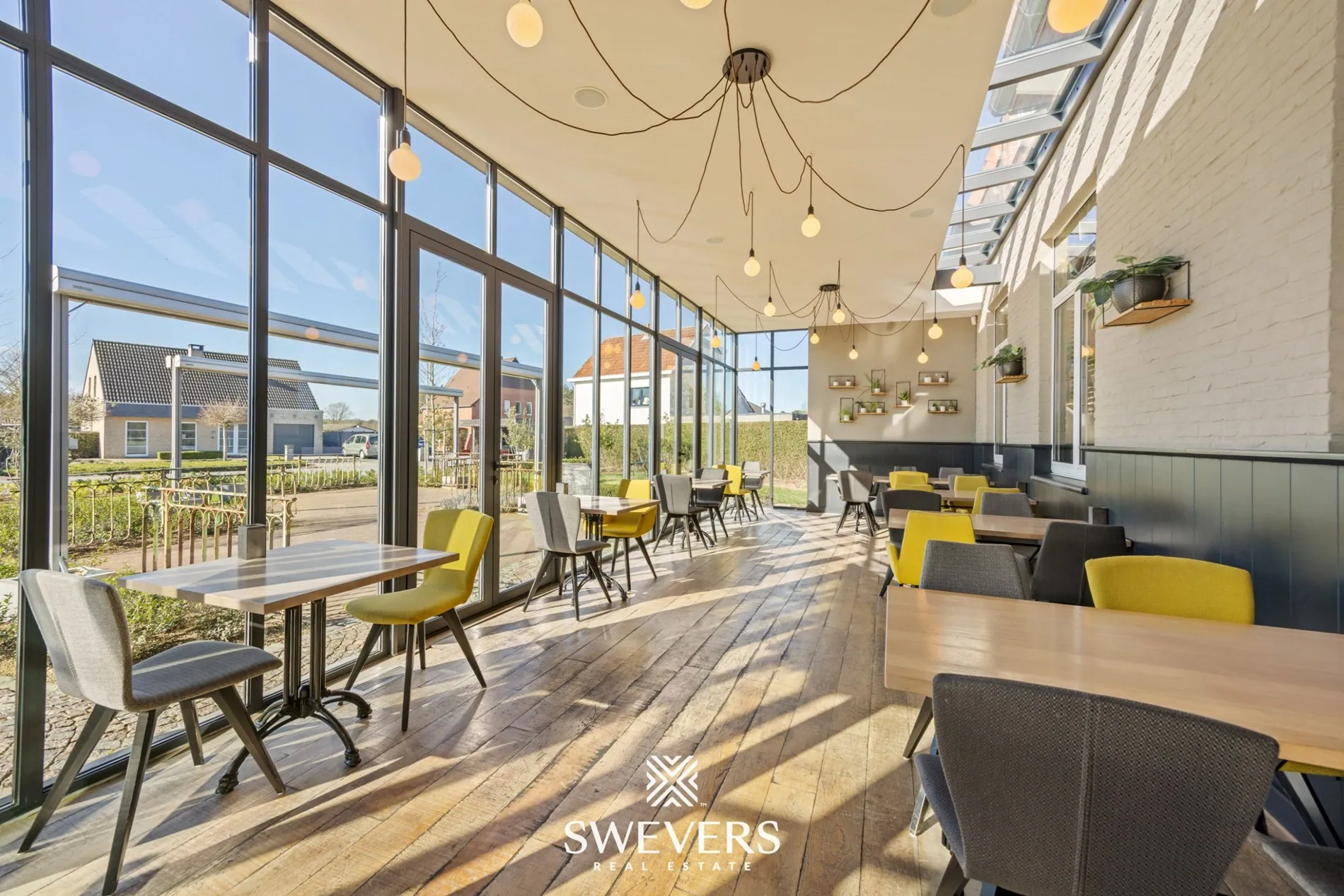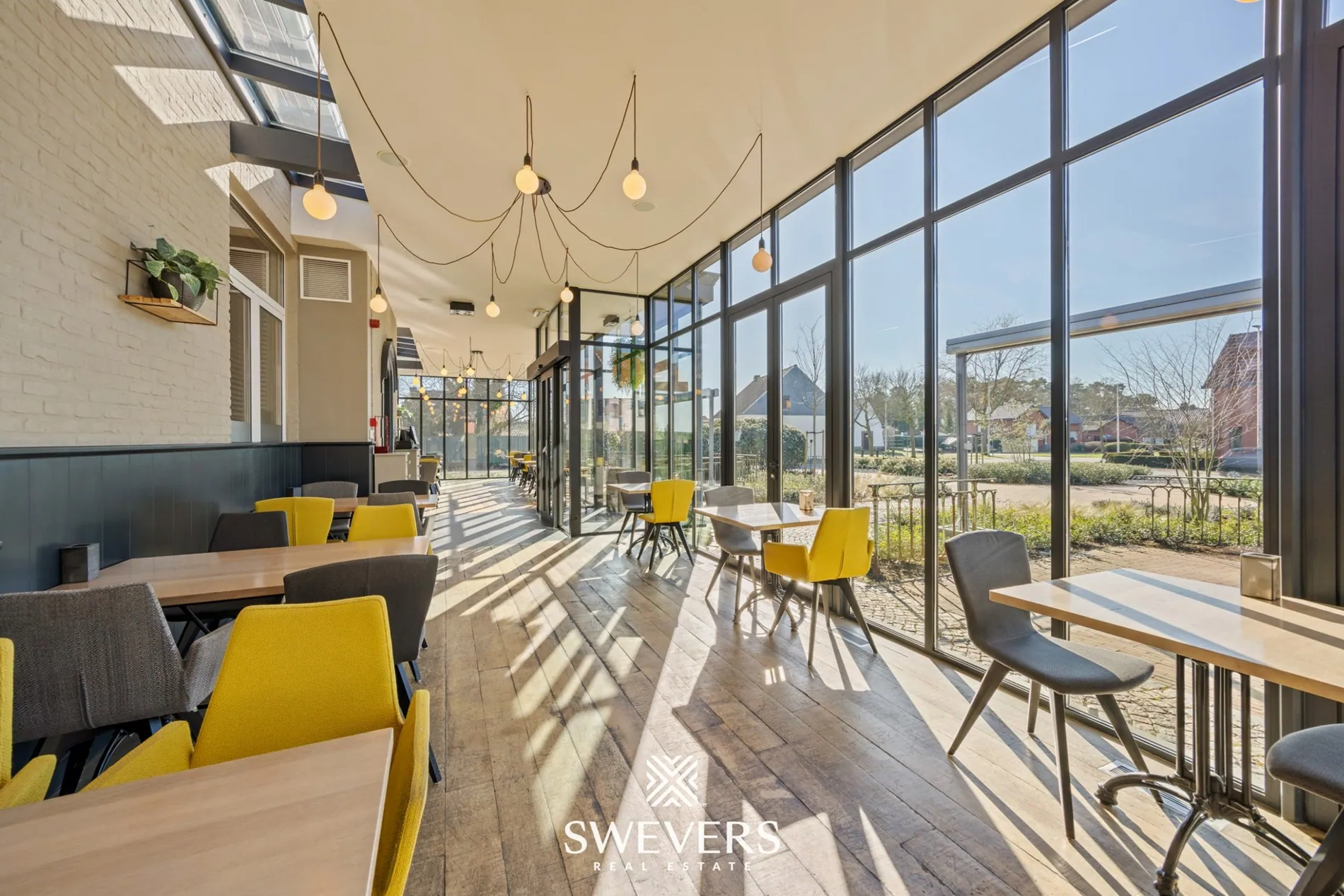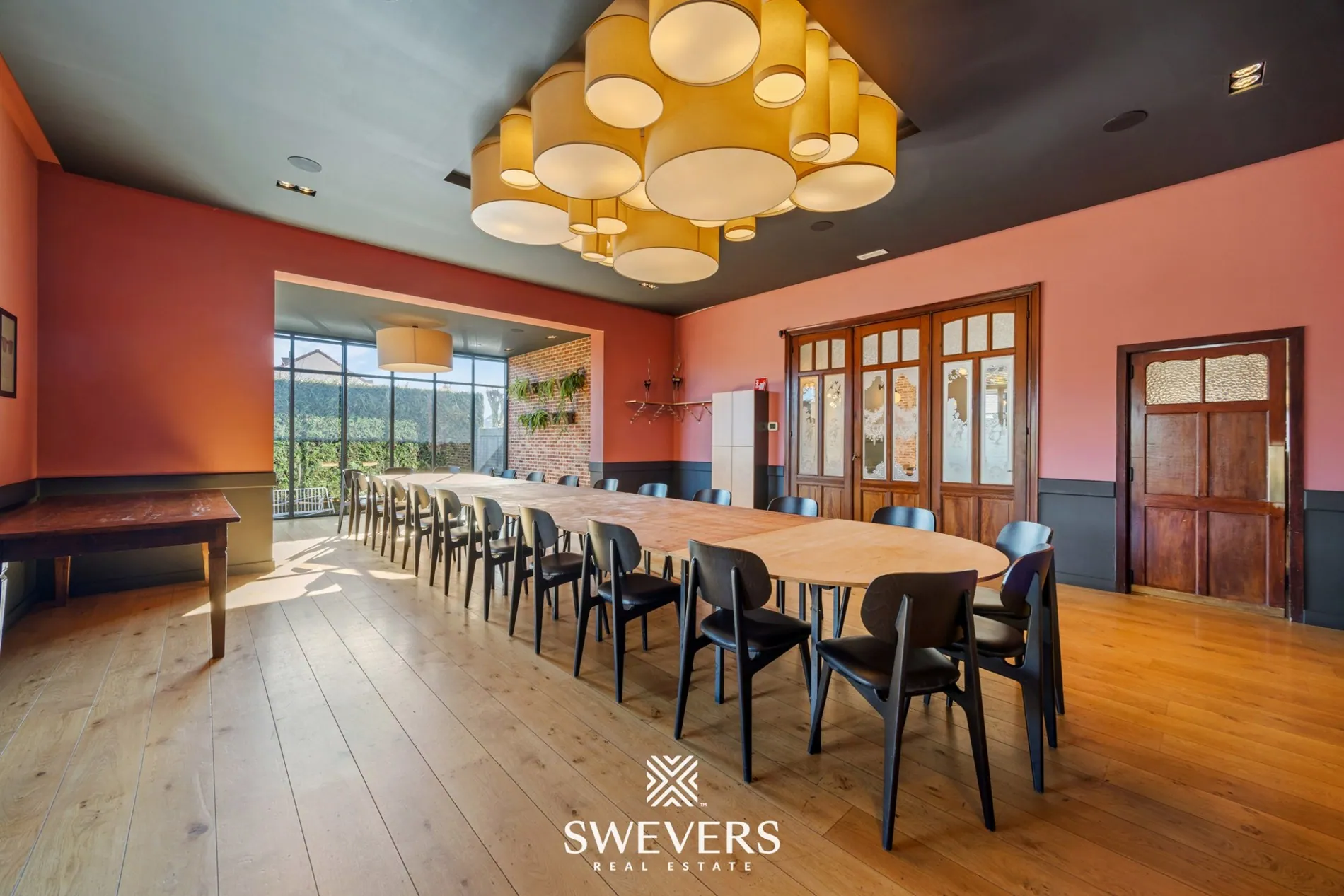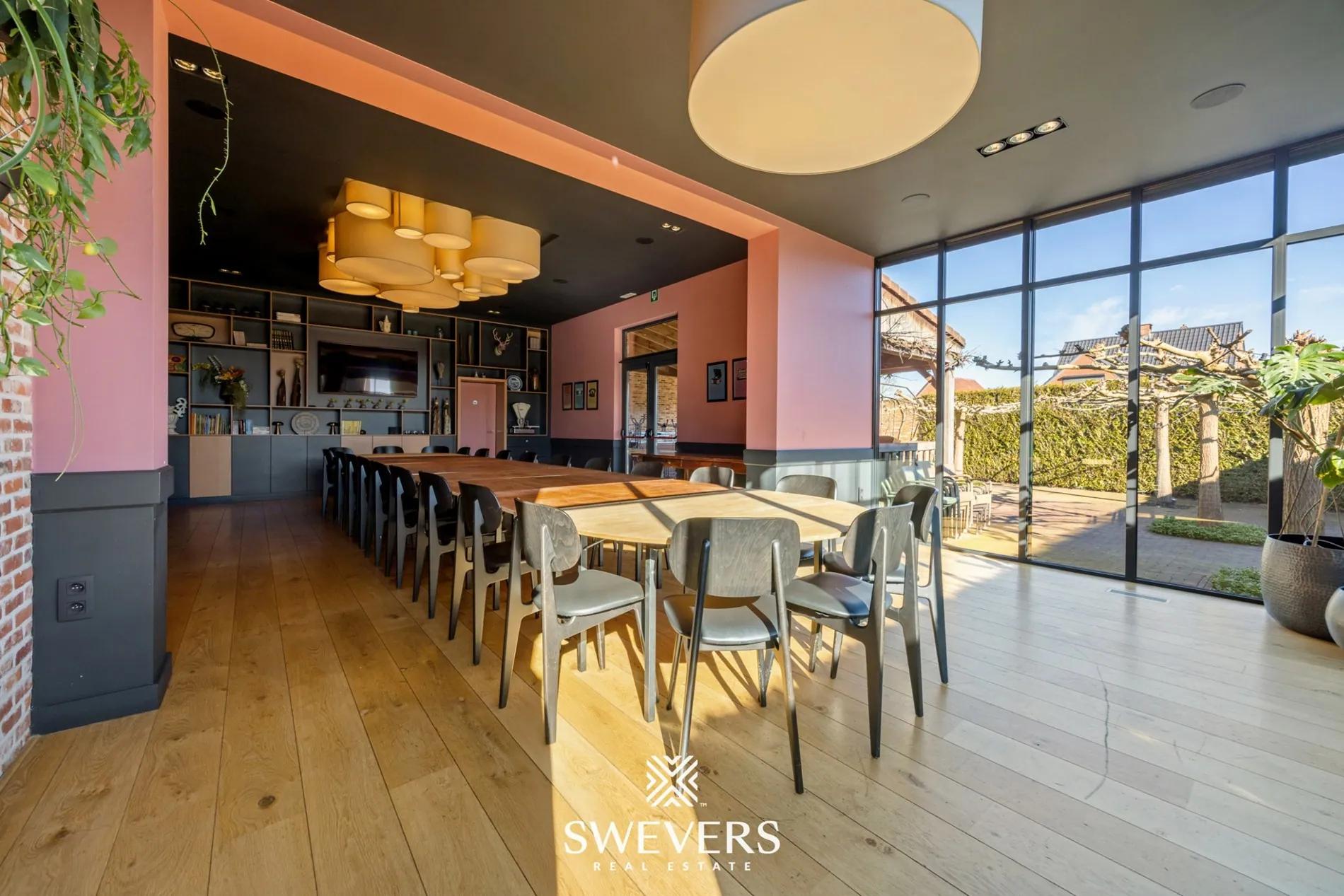 De indeling op het gelijkvloers laat een vlotte werking toe. De verschillende zalen kunnen afzonderlijk of samen gebruikt worden. Een aparte vergaderzaal van 46,97 m² biedt bijkomende mogelijkheden voor events of professionele bijeenkomsten. De orangerie van 66,86 m², vernieuwd in 2014, zorgt voor een aangename lichtinval en vormt een aantrekkelijke uitbreiding van de commerciële ruimte.