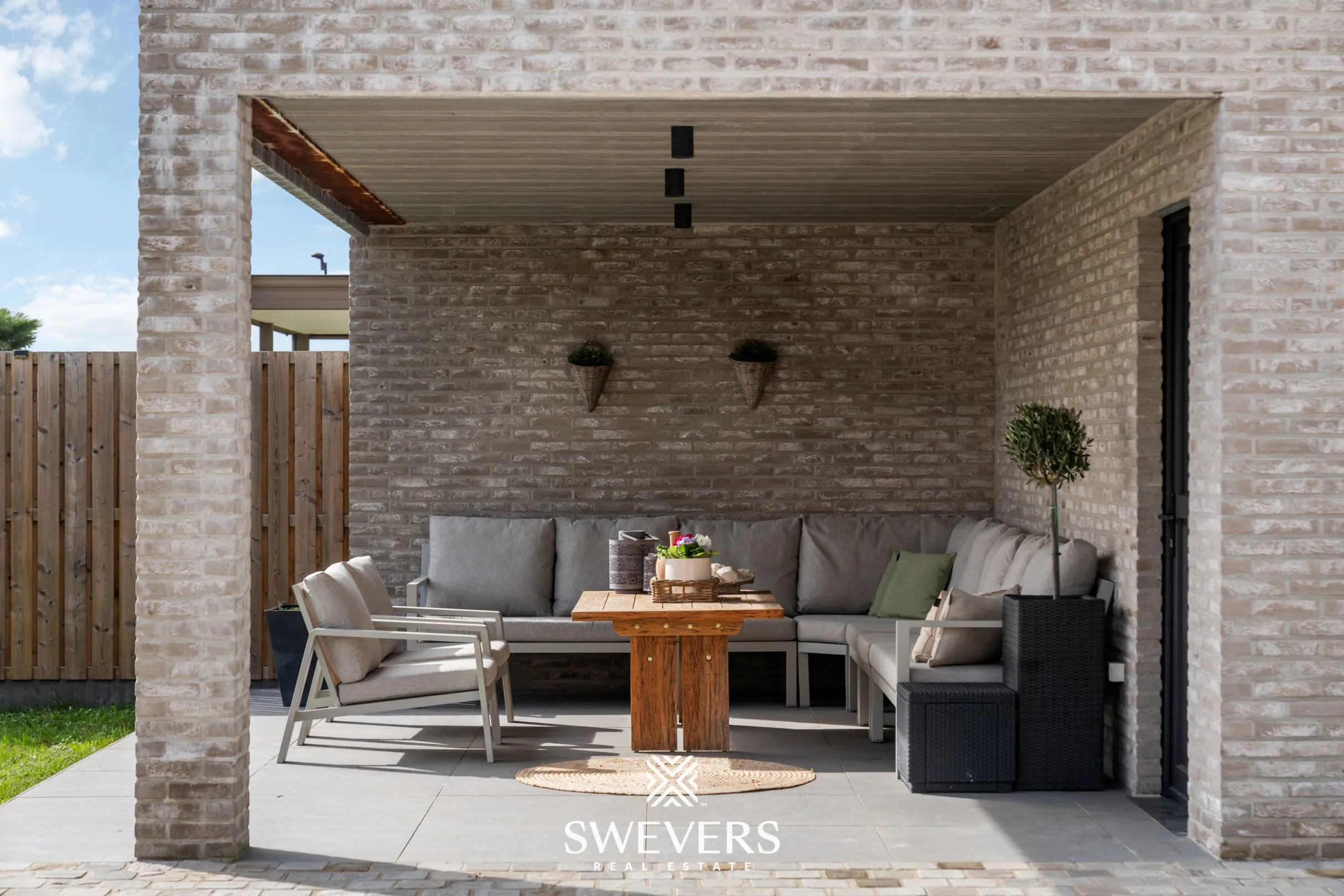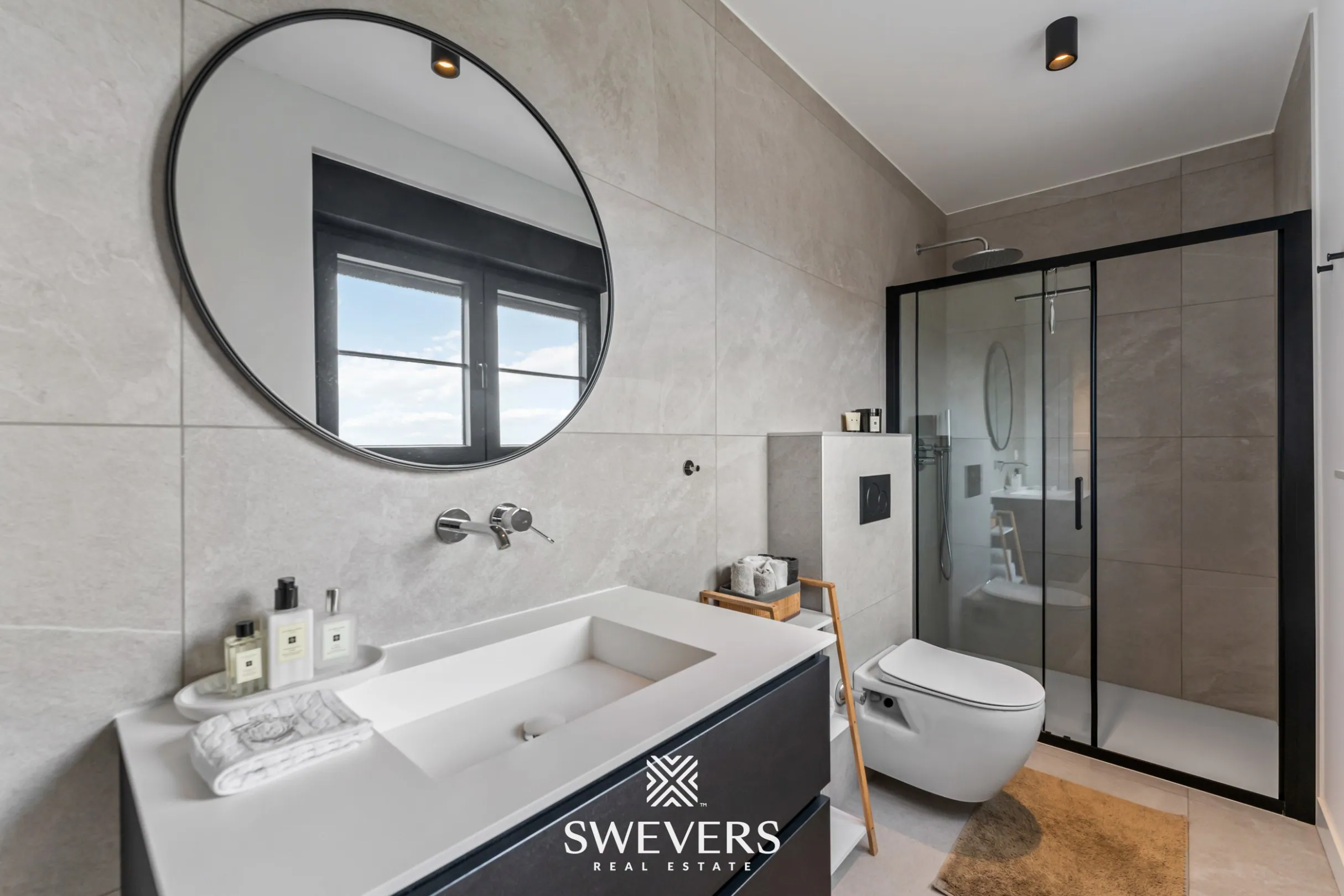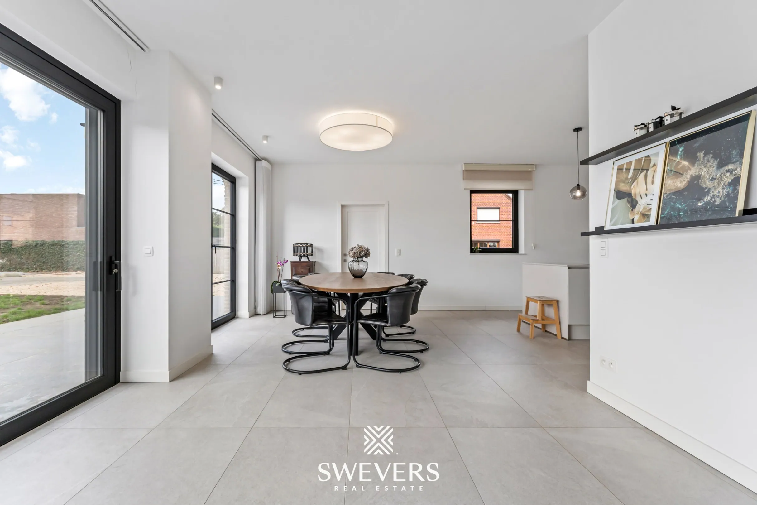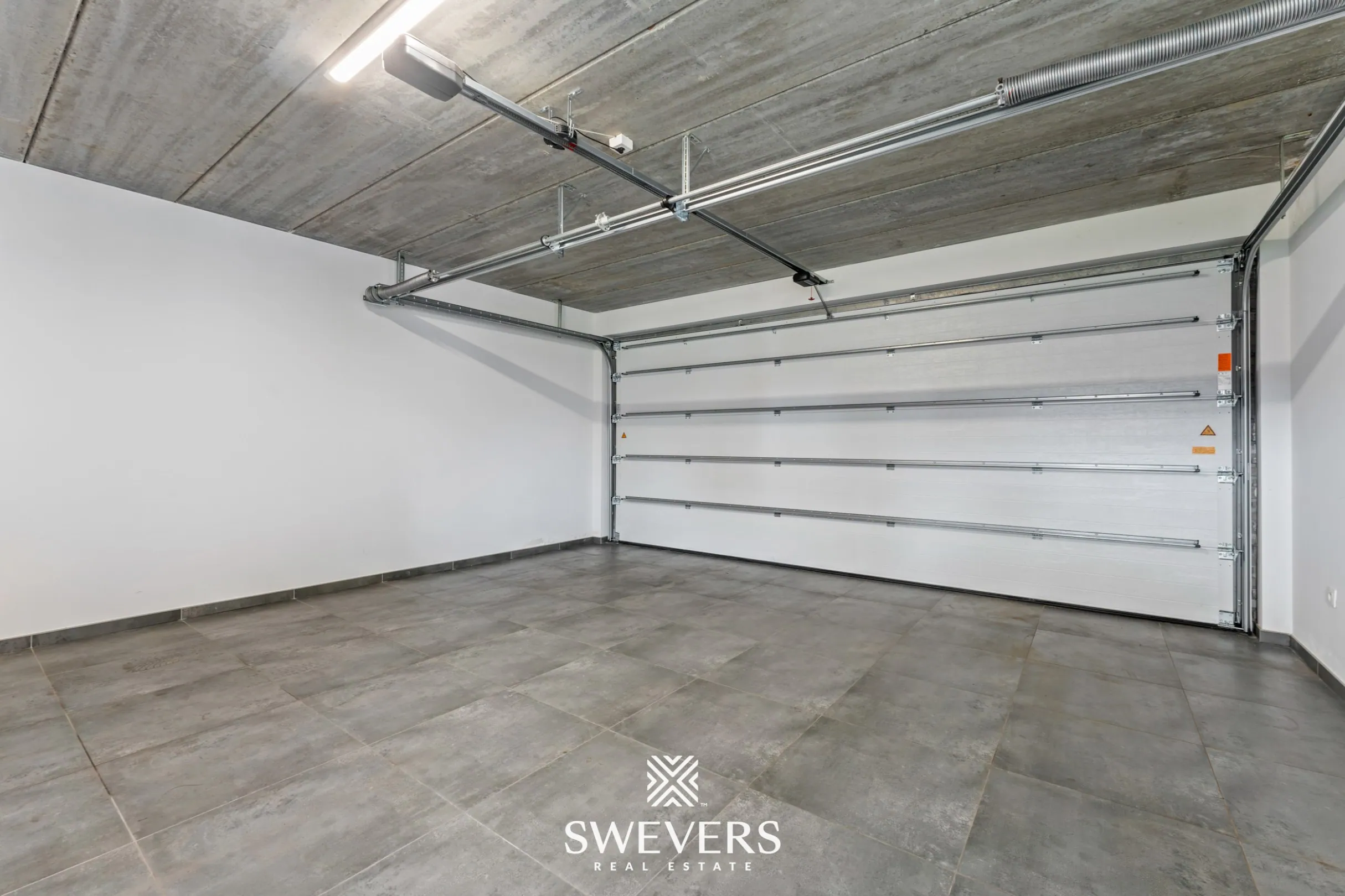 De woning beschikt daarnaast over een garage, wat extra praktisch comfort biedt voor het parkeren van een wagen en het opbergen van materiaal of fietsen. De hoogwaardige afwerking en doordachte indeling maken van deze woning een plek waar functionaliteit en esthetiek mooi samenkomen.