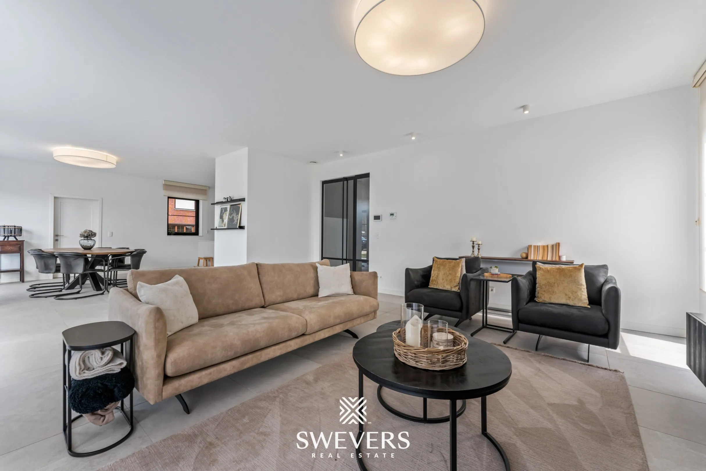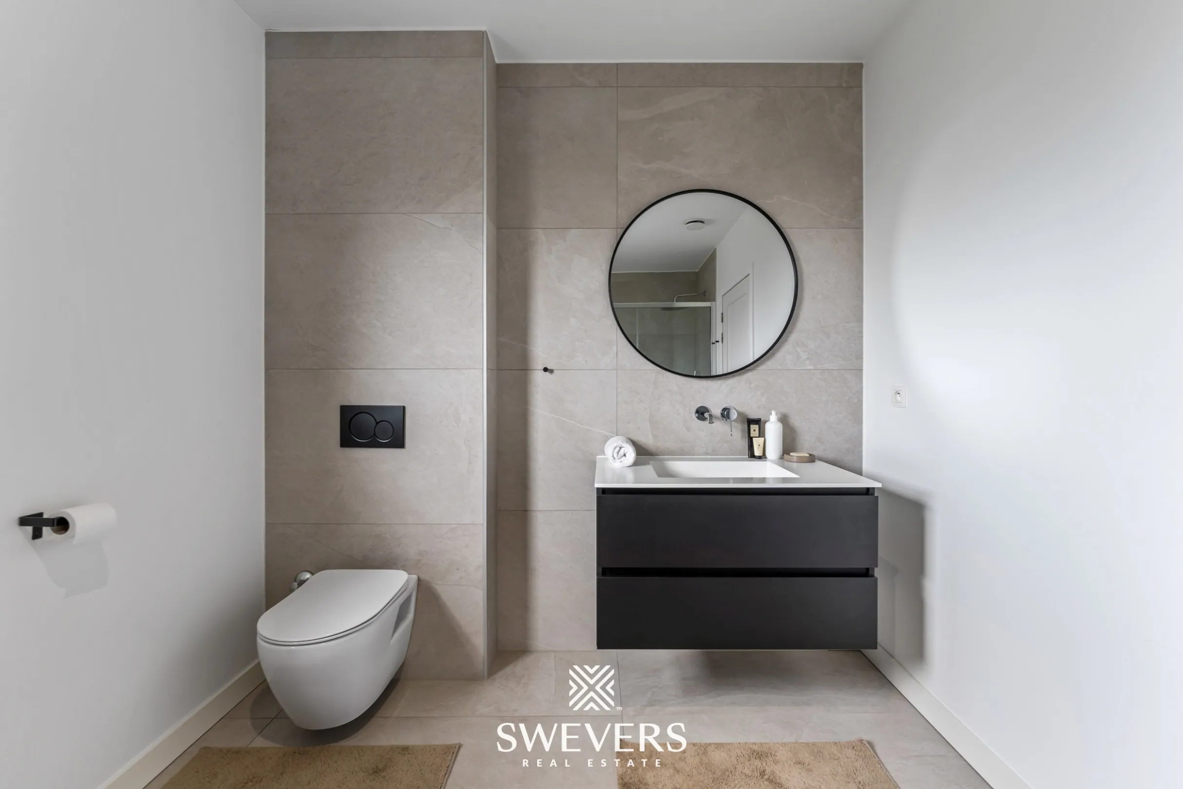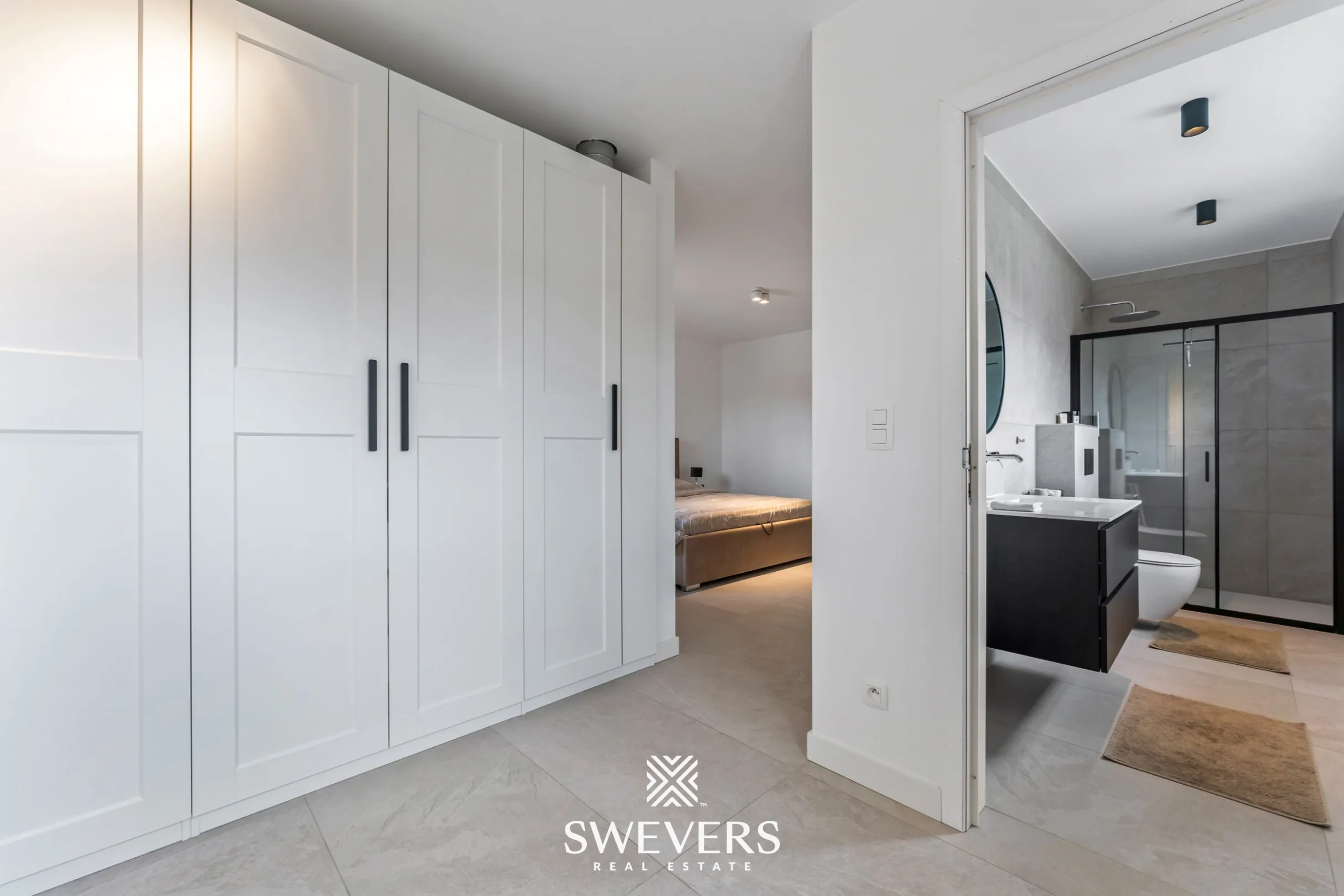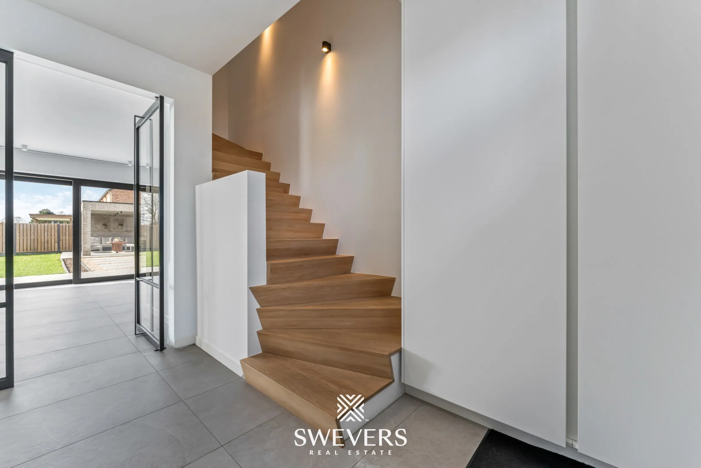 De woning beschikt daarnaast over een garage, wat extra praktisch comfort biedt voor het parkeren van een wagen en het opbergen van materiaal of fietsen. De hoogwaardige afwerking en doordachte indeling maken van deze woning een plek waar functionaliteit en esthetiek mooi samenkomen.