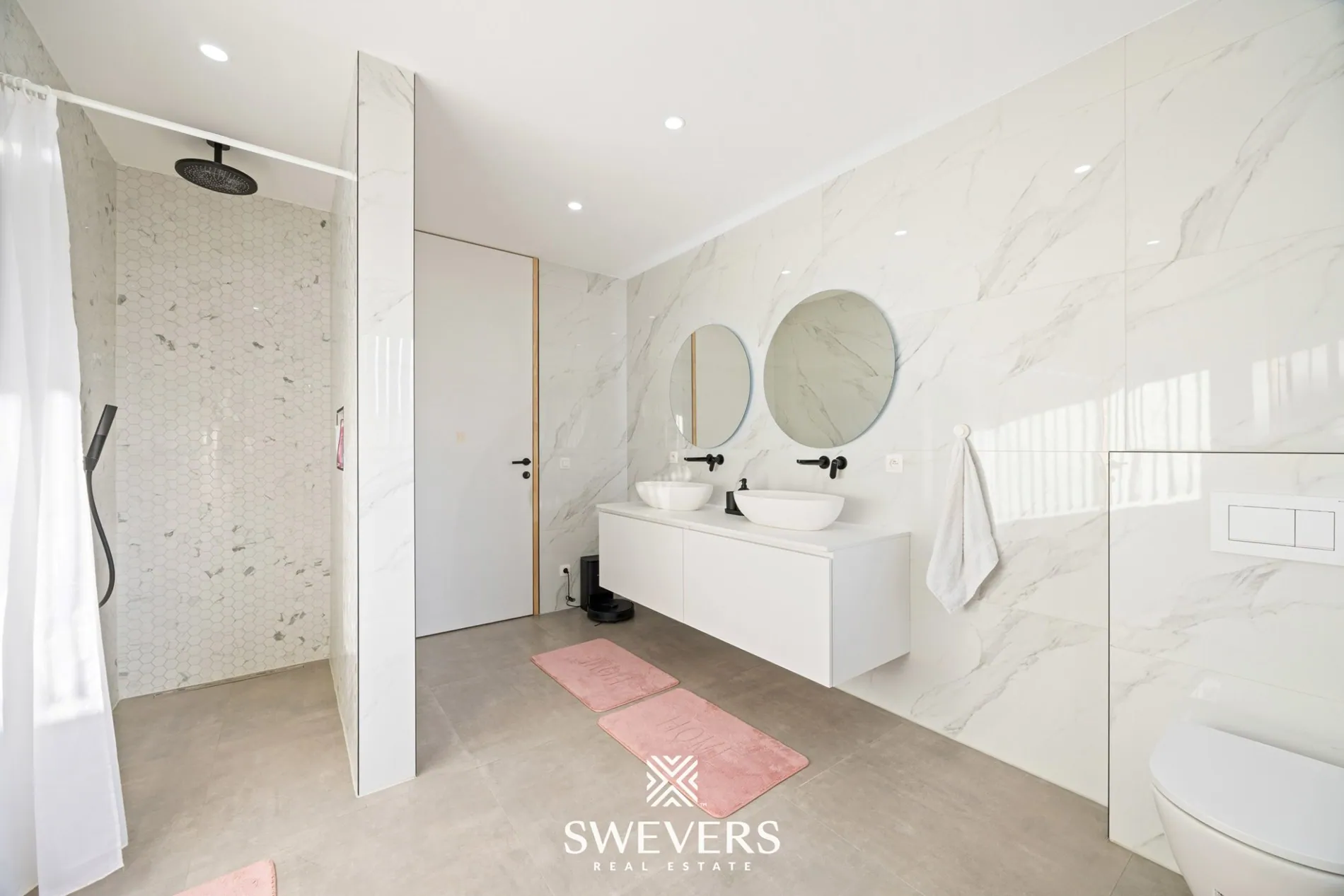 De villa beschikt over twee stijlvolle badkamers, afgewerkt met hoogwaardige materialen en ontworpen voor dagelijks comfort. Hier start u uw dag ontspannen en sluit u hem af in alle rust. De indeling is praktisch en tegelijk luxueus, perfect afgestemd op een modern gezinsleven.