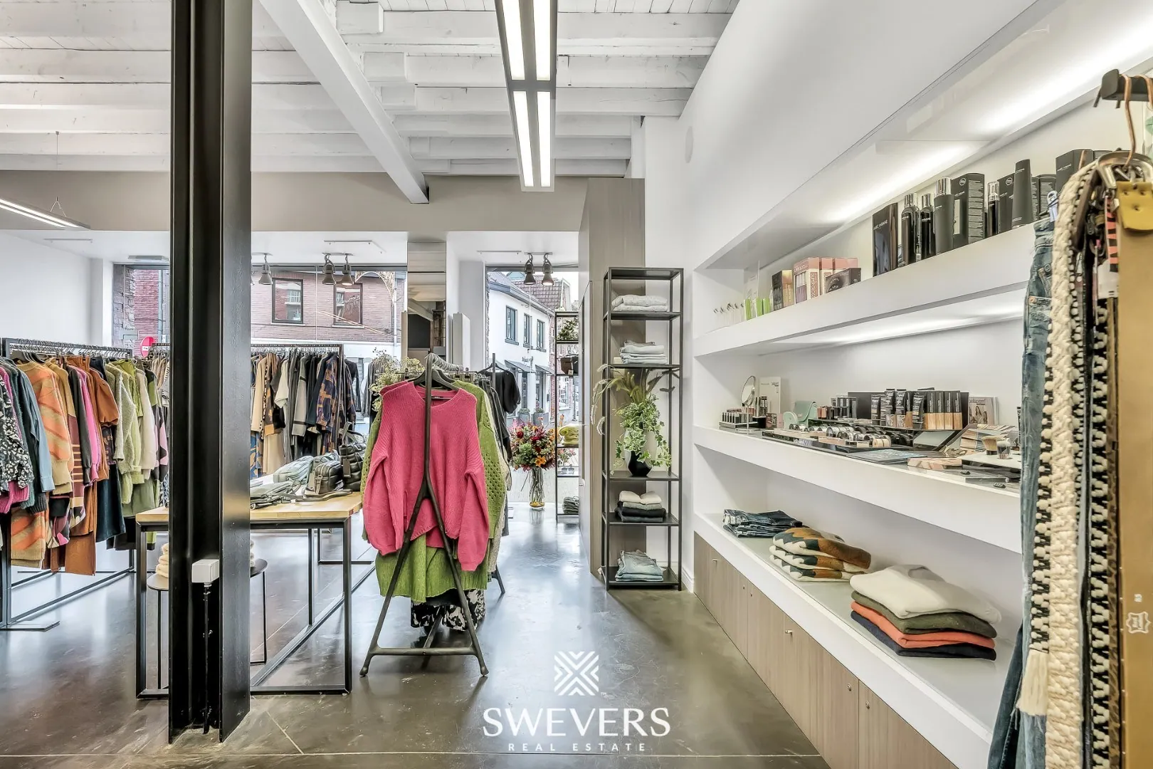 De voorgevel aan de Hoogstraat trekt meteen de aandacht dankzij de grote etalage, ideaal om producten of diensten te presenteren.