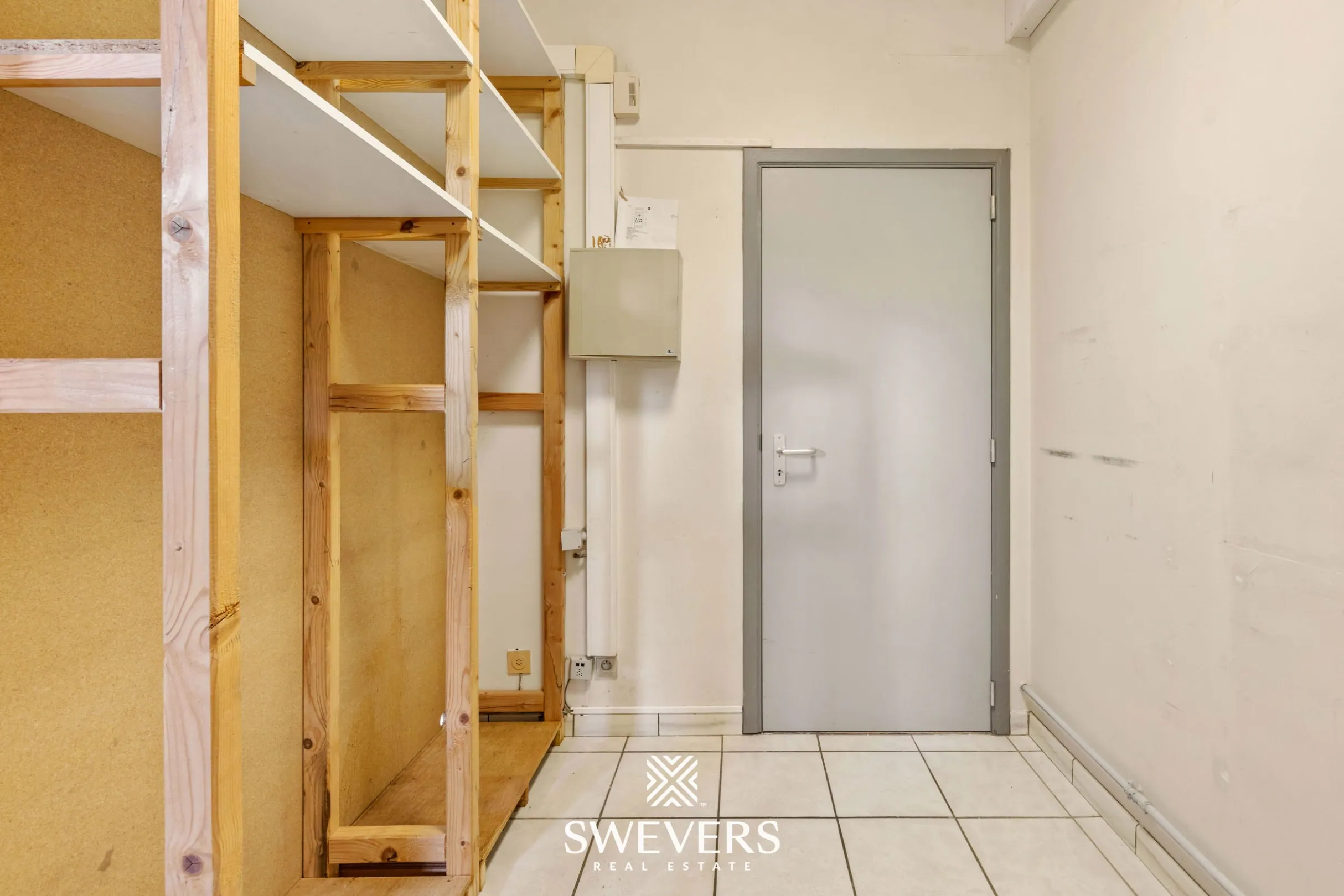 Deze garage is bereikbaar via een naastliggende doorgang, waardoor ook de ligging op het perceel bijzonder gunstig is. De oriëntatie laat voldoende lichtinval toe, en de garage biedt de mogelijkheid tot een extra leveringspunt of uitbreiding van de opslagruimte.