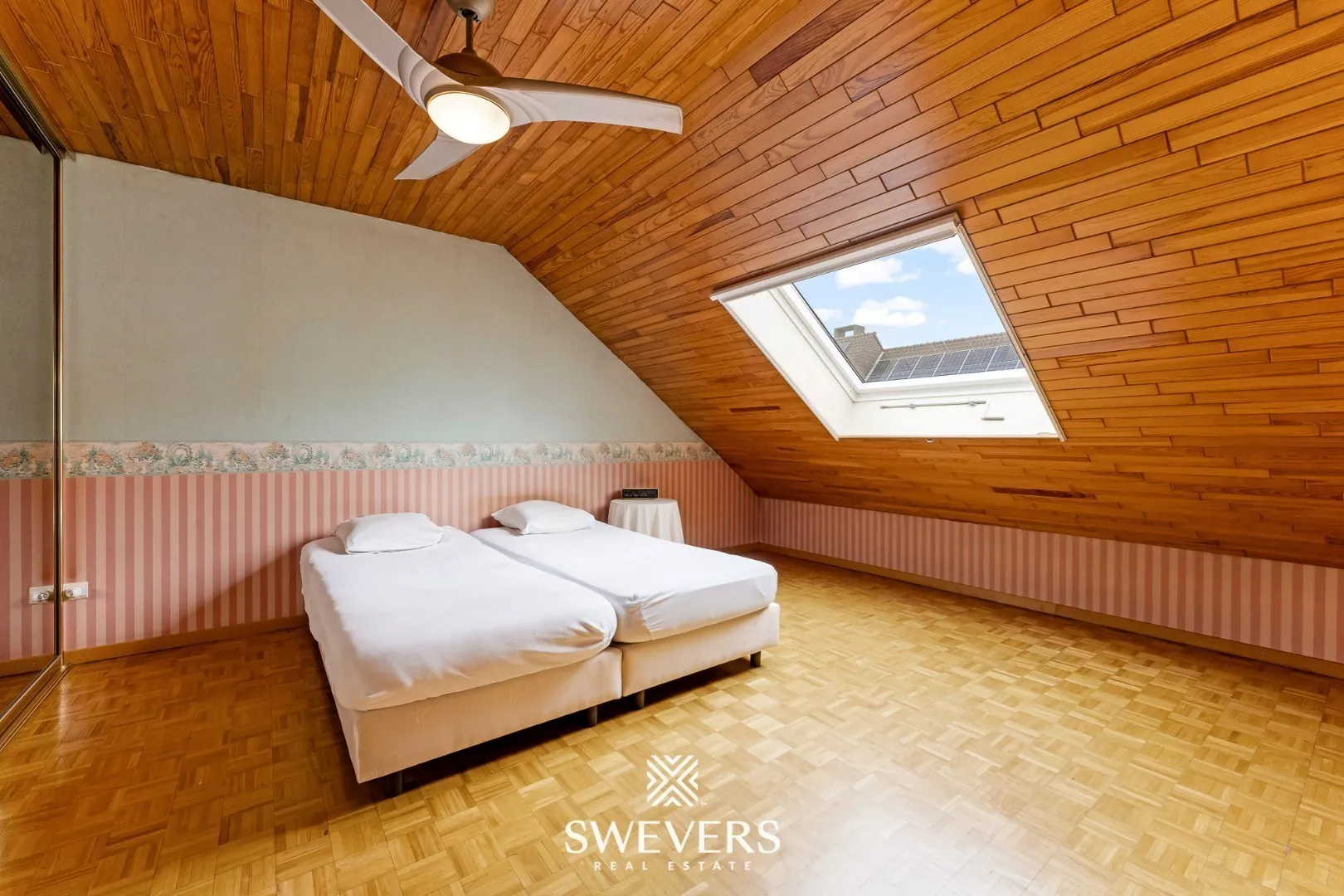 De tweede verdieping herbergt vier ruime slaapkamers. De masterbedroom van 23 m² is voorzien van inbouwkasten, net zoals de andere kamers. De slaapkamers meten respectievelijk 14,40 m², 12,56 m² en 22,58 m² en bieden voldoende ruimte voor elk gezinslid. De vide op deze verdieping geeft een unieke dimensie aan de ruimtes en zorgt voor een aangename lichtinval. De badkamer is modern afgewerkt en uitgerust met een ligbad en douche, ideaal voor ontspanning na een lange dag.