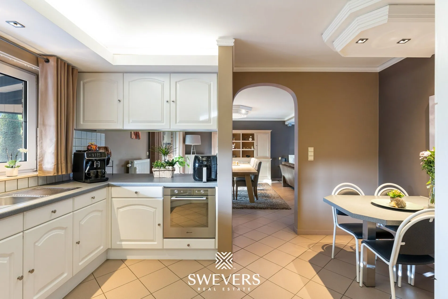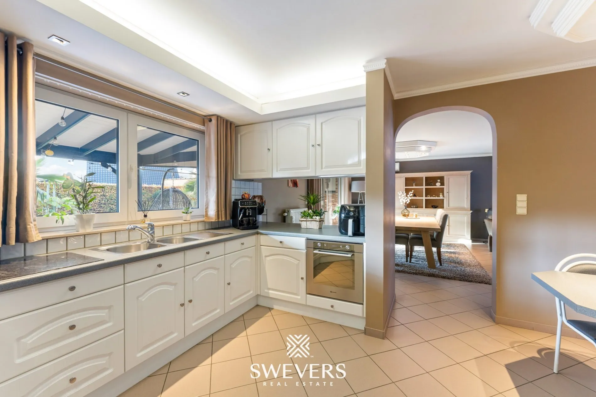 Grenzend aan de leefruimte ligt de praktische keuken van 12,72 m². De toestellen werden recent vernieuwd, waardoor je hier volledig hedendaags comfort geniet. Het is een fijne plek om te koken en samen te zijn, terwijl je dankzij de open indeling altijd verbonden blijft met de woonkamer. De inpandige garage met plaats voor één wagen biedt extra mogelijkheden: zo kan deze ruimte later perfect ingericht worden als hobbyruimte, bureau of zelfs extra kamer.
