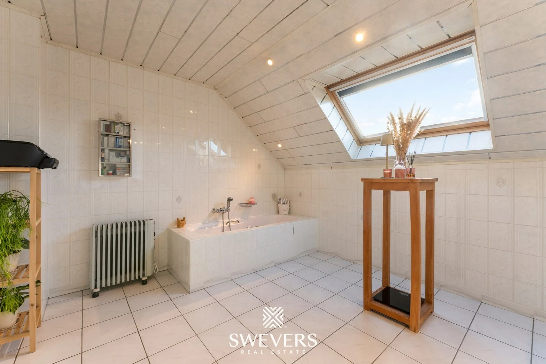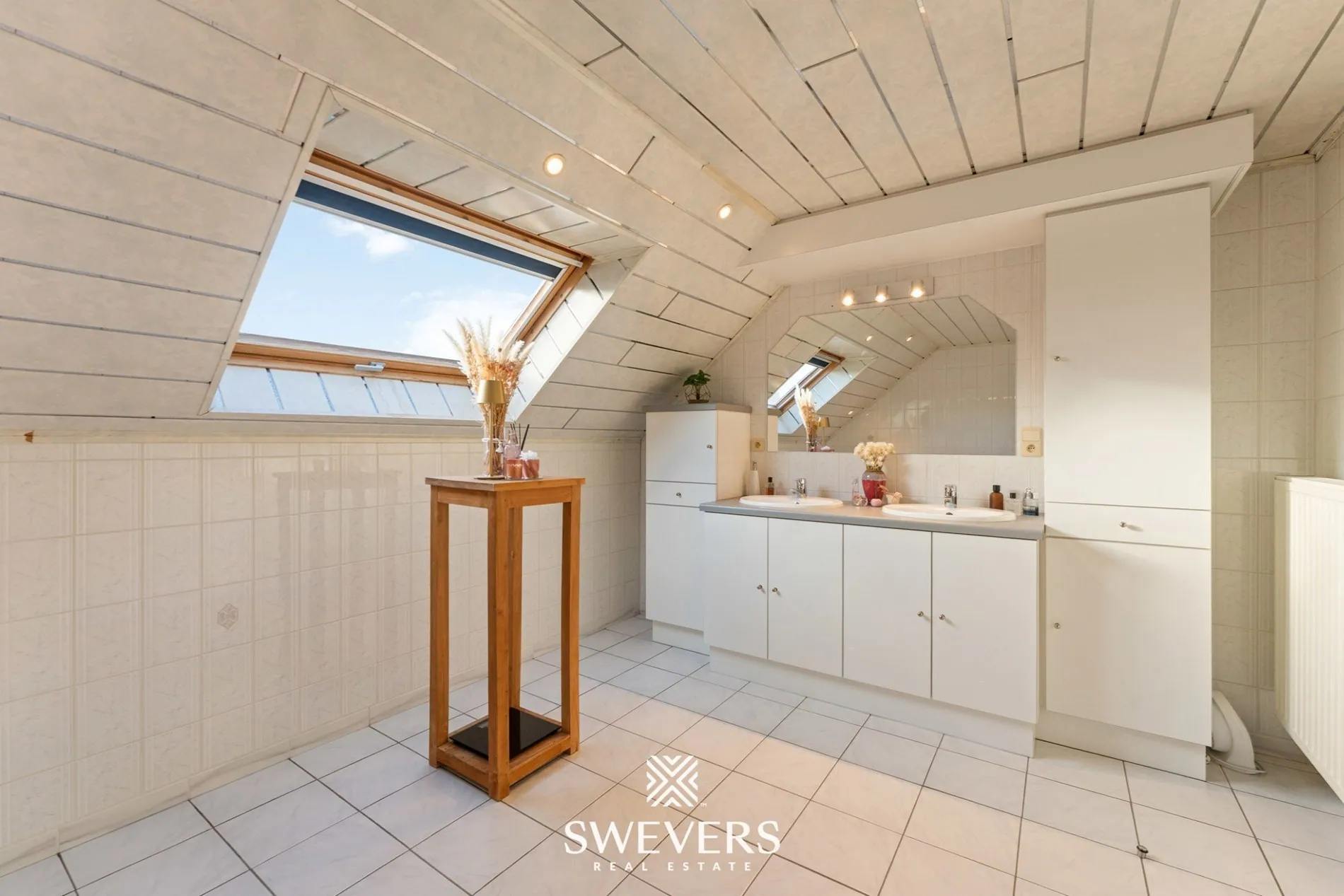 Op de eerste verdieping bevinden zich drie verzorgde slaapkamers van 10,86 m², 19,17 m² en 8,90 m². De grootste slaapkamer biedt alle ruimte voor een comfortabele master bedroom met dressing. De badkamer is functioneel ingericht en geeft je elke dag een vlotte start. Voor wie extra ruimte zoekt, vormt de zolder van 48 m² — een meerwaarde. Deze verdieping kan perfect dienen als berging of worden omgevormd tot een nieuwe leefruimte, speelkamer of thuiskantoor.
