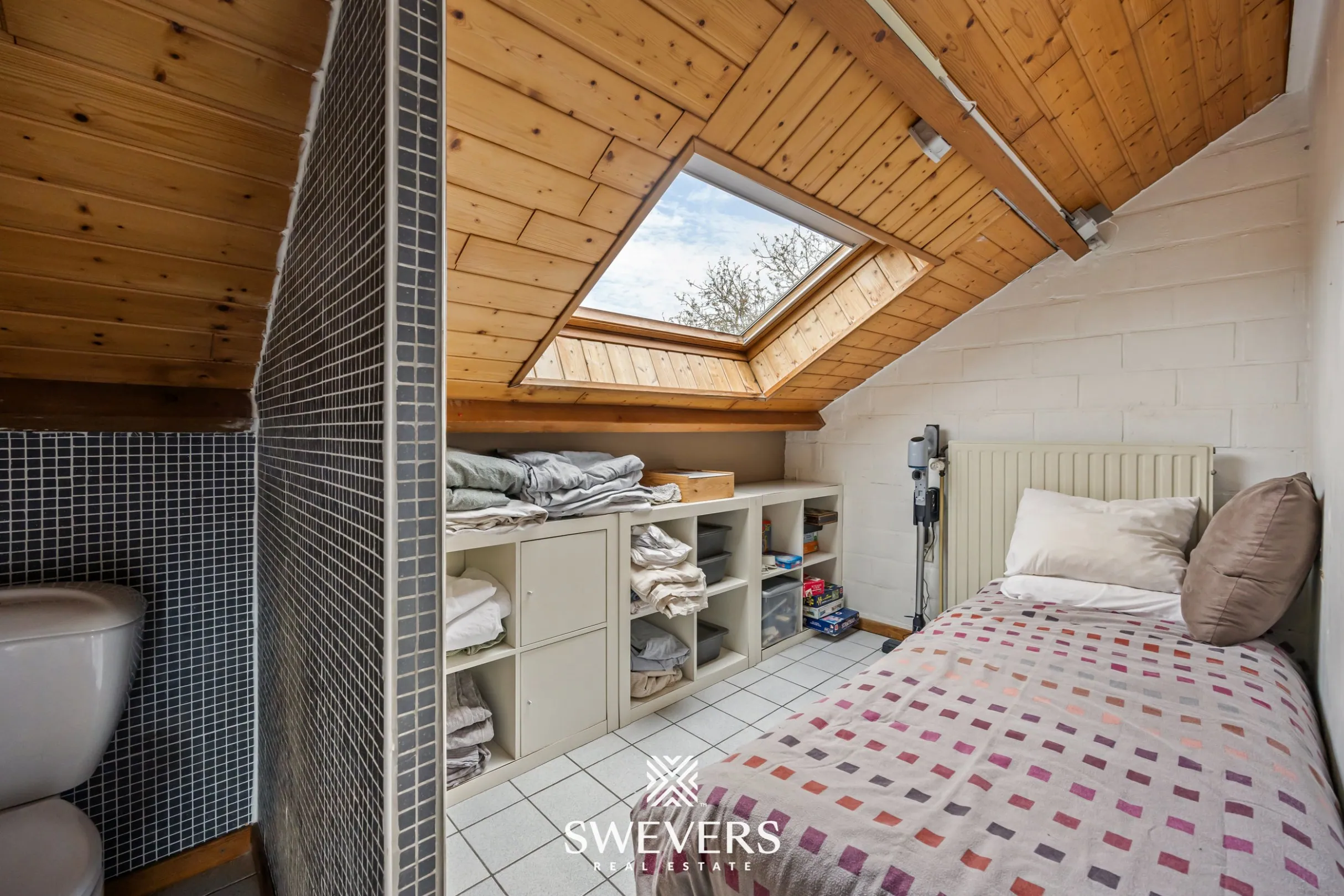 Verder beschikt de woning over een zolder van 7,5 m², ideaal als extra bergruimte. De inpandige garage van 28 m² biedt plaats aan één wagen en bijkomende opslagmogelijkheden, wat het dagelijks gemak aanzienlijk verhoogt.