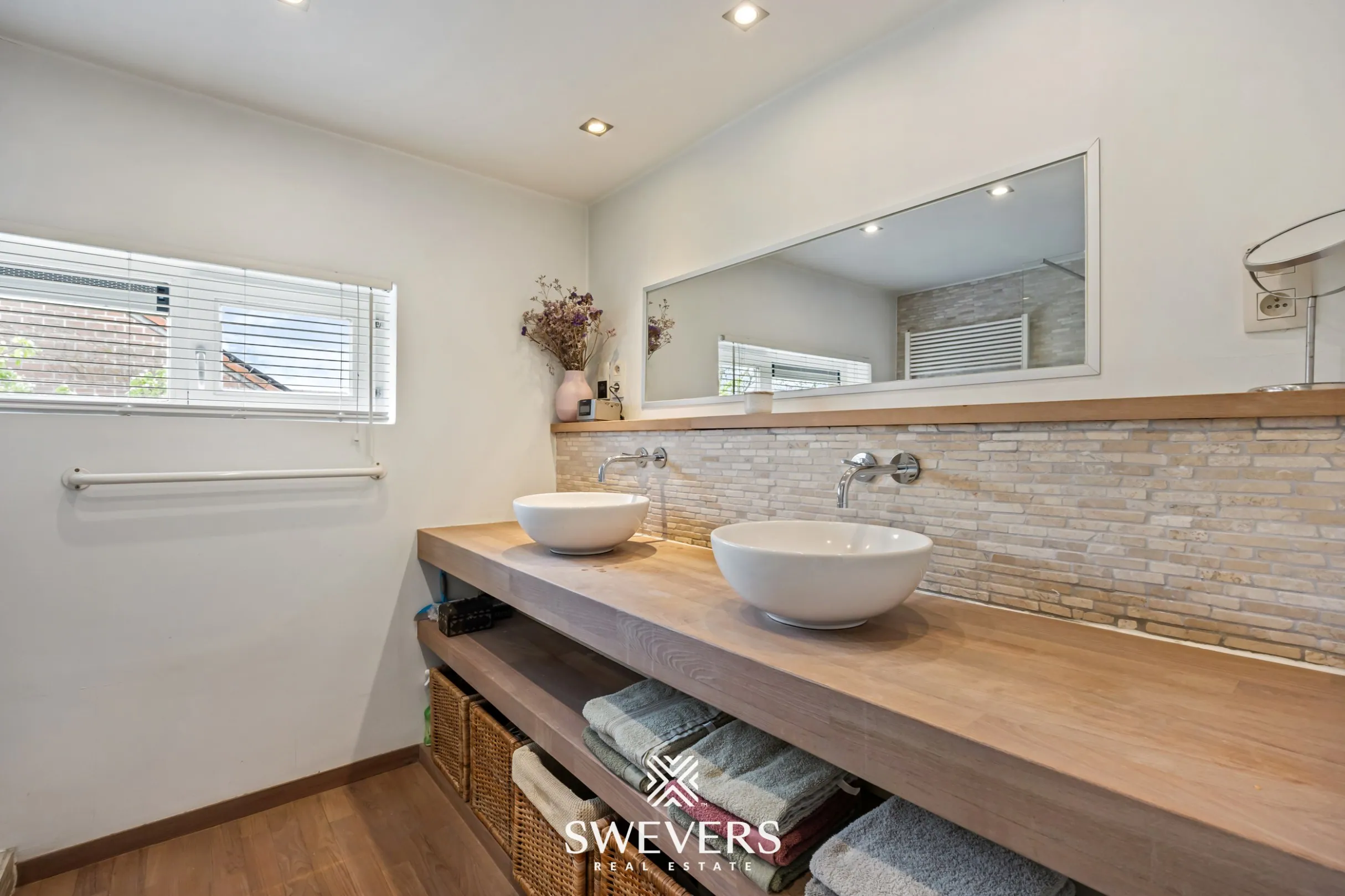 De badkamer werd ook vernieuwd en is functioneel en verzorgd ingericht. Hier start u de dag in alle comfort en sluit u die ’s avonds ontspannen af. Alles is aanwezig om aan de hedendaagse woonbehoeften te voldoen.