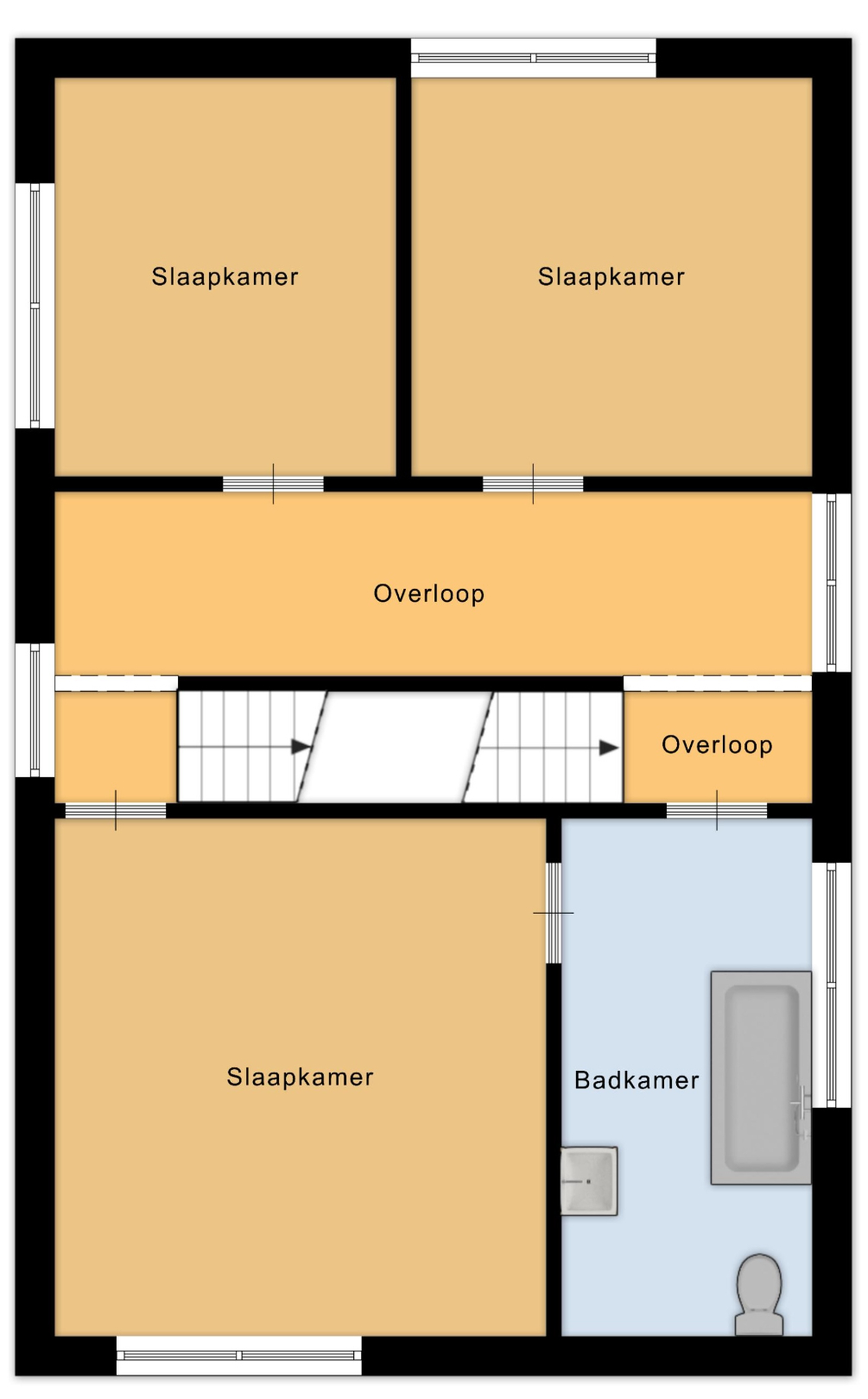 De eerste verdieping is ingericht met meerdere slaapkamers en de badkamer. Hier bevinden zich drie slaapkamers met oppervlaktes van 20,5 m², 14 m² en 13 m². Elke kamer biedt voldoende ruimte voor een volwaardige inrichting. De badkamer is centraal gelegen en praktisch ingedeeld, wat het comfort op deze verdieping verhoogt.