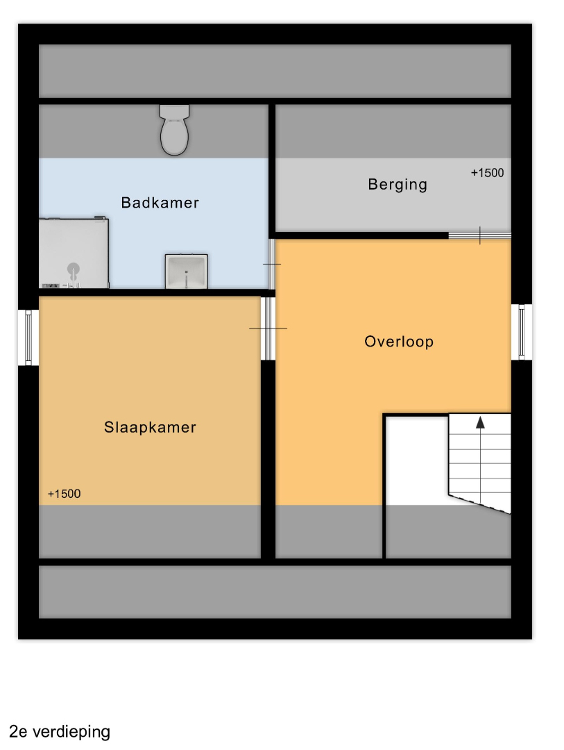 De tweede verdieping biedt nog extra wooncomfort. Hier bevindt zich een derde slaapkamer van 8,22 m², ideaal als kinderkamer of logeerkamer. Daarnaast is er een tweede badkamer met douche, lavabo en toilet. Tot slot is er nog een praktische berging aanwezig en een ruime overloop die ook als speelruimte of leeshoek benut kan worden.