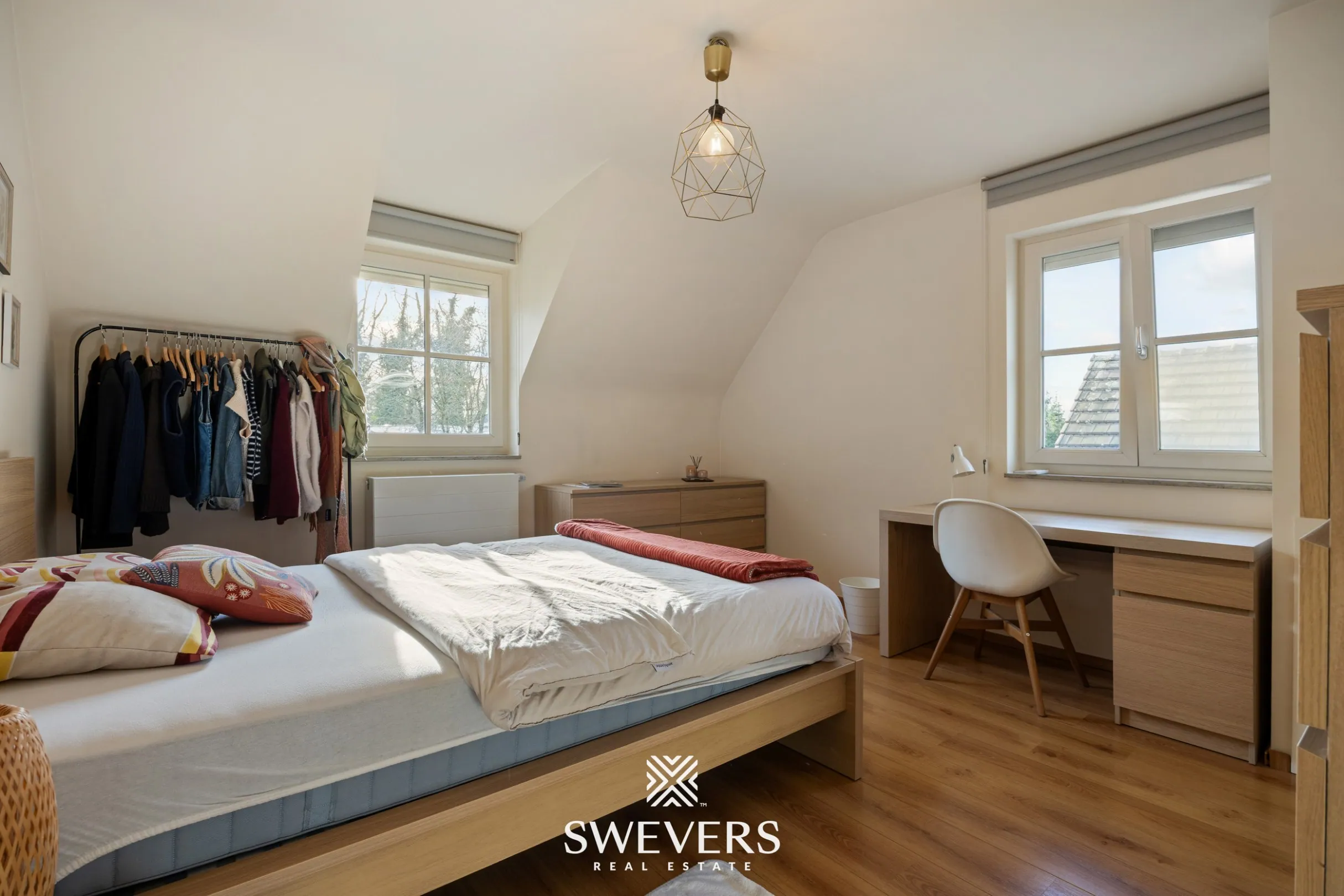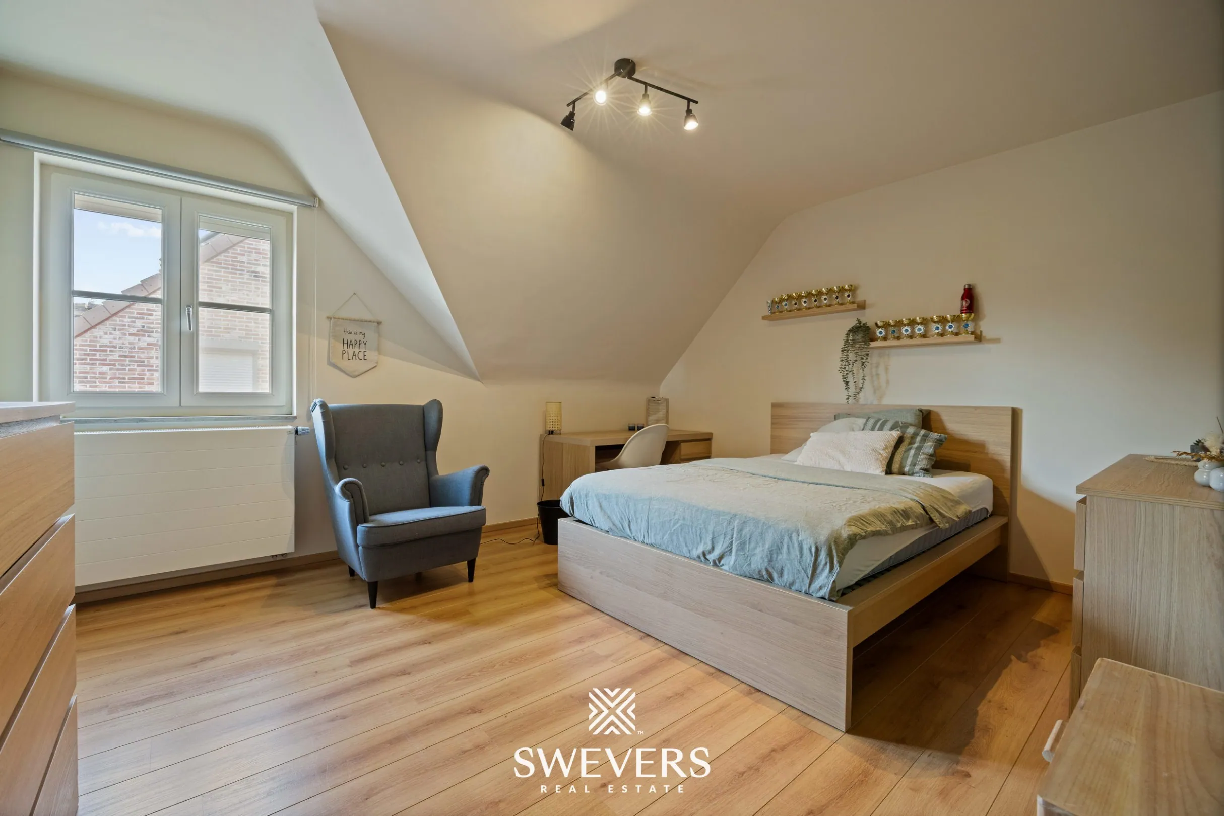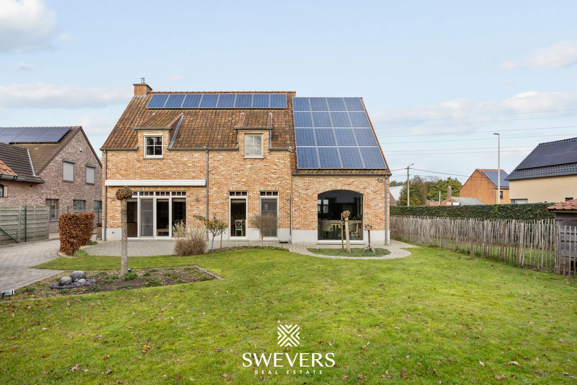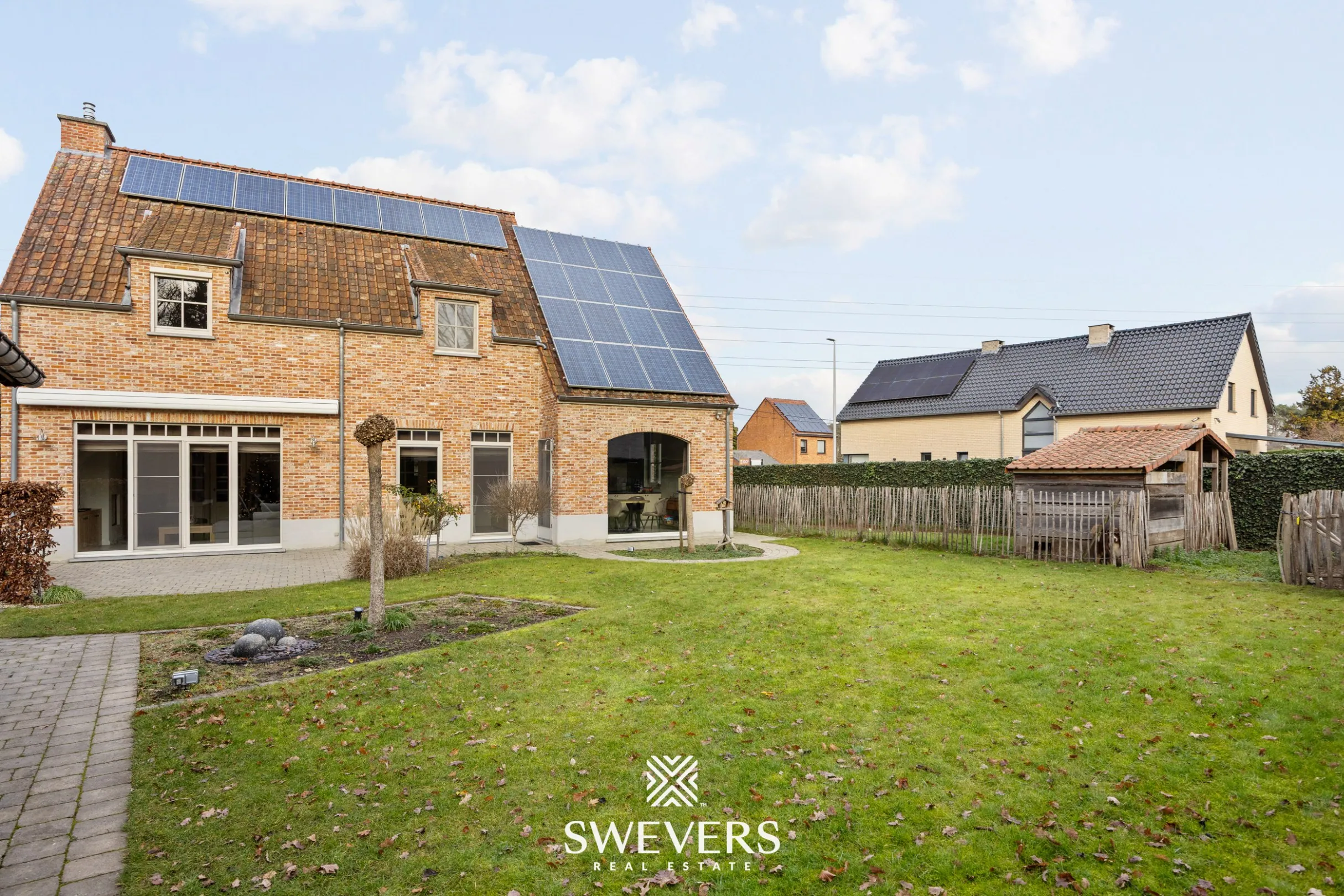 Naast de voor de hand liggende troeven zoals zonnepanelen en airco’s, is ook aan de praktische details gedacht: ingebouwde vestiaires op zowel de beneden- als bovenverdieping, kwalitatieve maatkasten, en een indeling die is afgestemd op het dagelijkse gezinsleven.