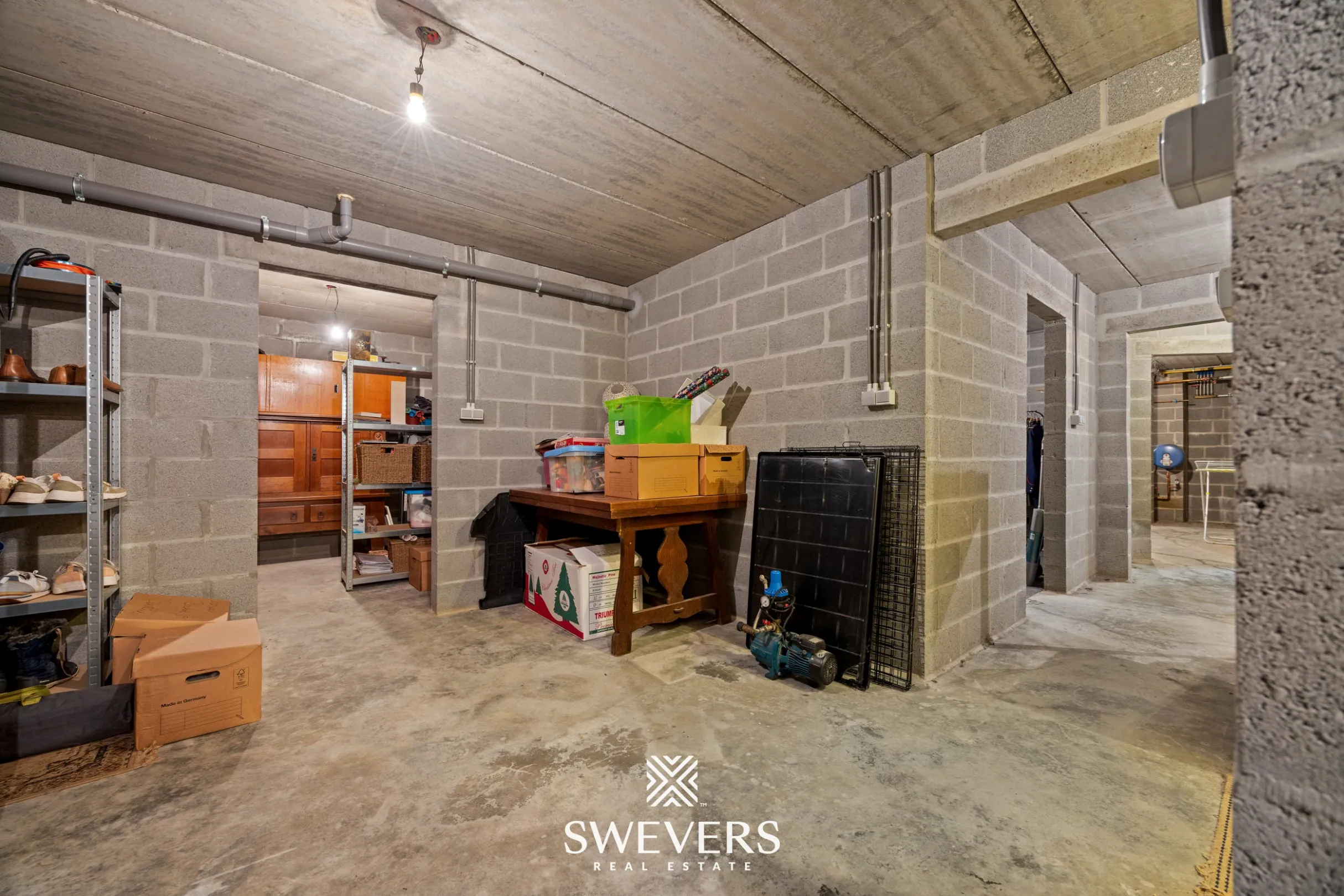 De kelderverdieping van deze woning is indrukwekkend in omvang, met maar liefst 184 m² verdeeld over meerdere ruimtes. Ideaal voor wie nood heeft aan een wijnkelder, werkruimte, opslag of hobbyruimte. Dankzij de solide structuur en degelijke afwerking blijft de kelder koel en droog – een absoluut functionele meerwaarde.