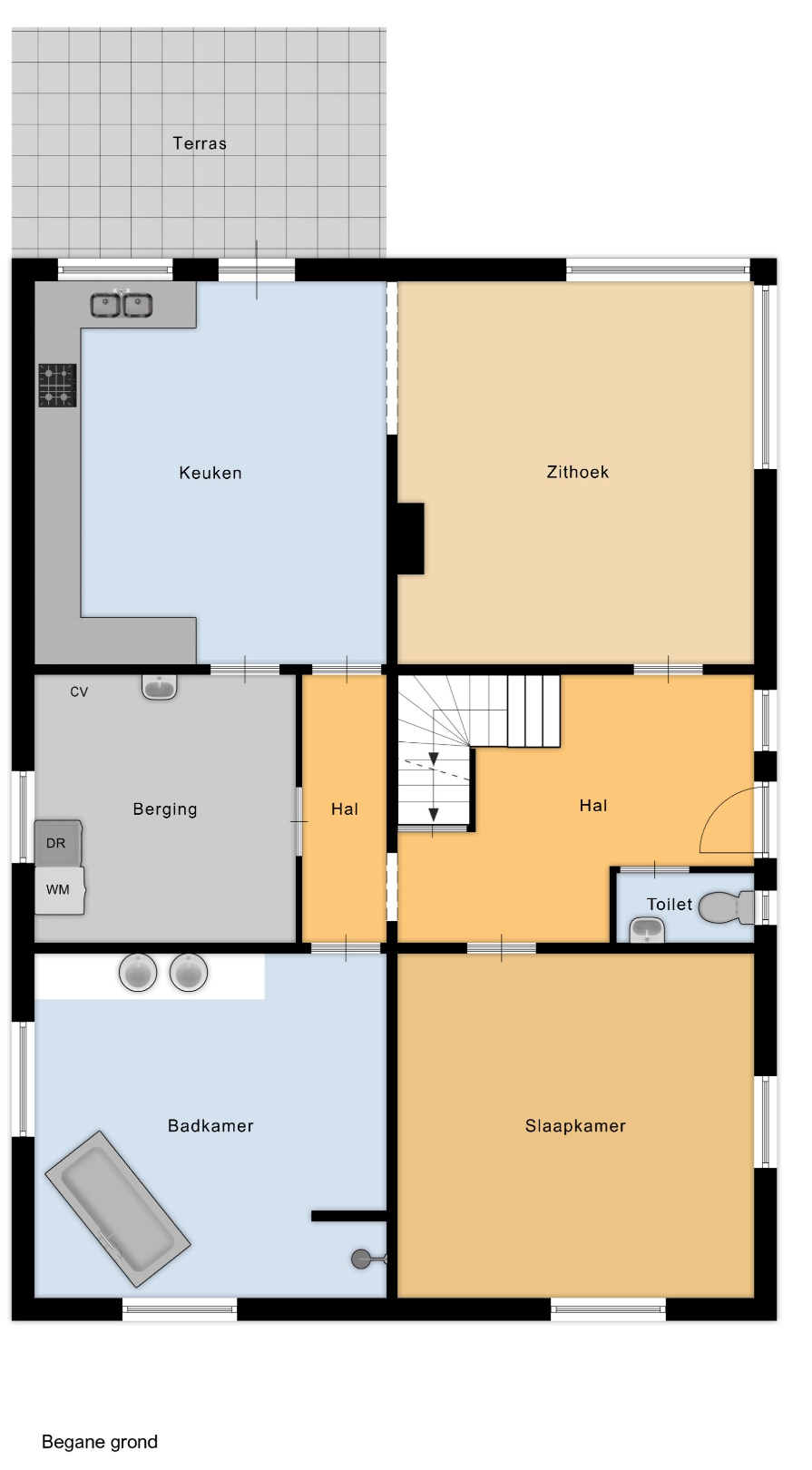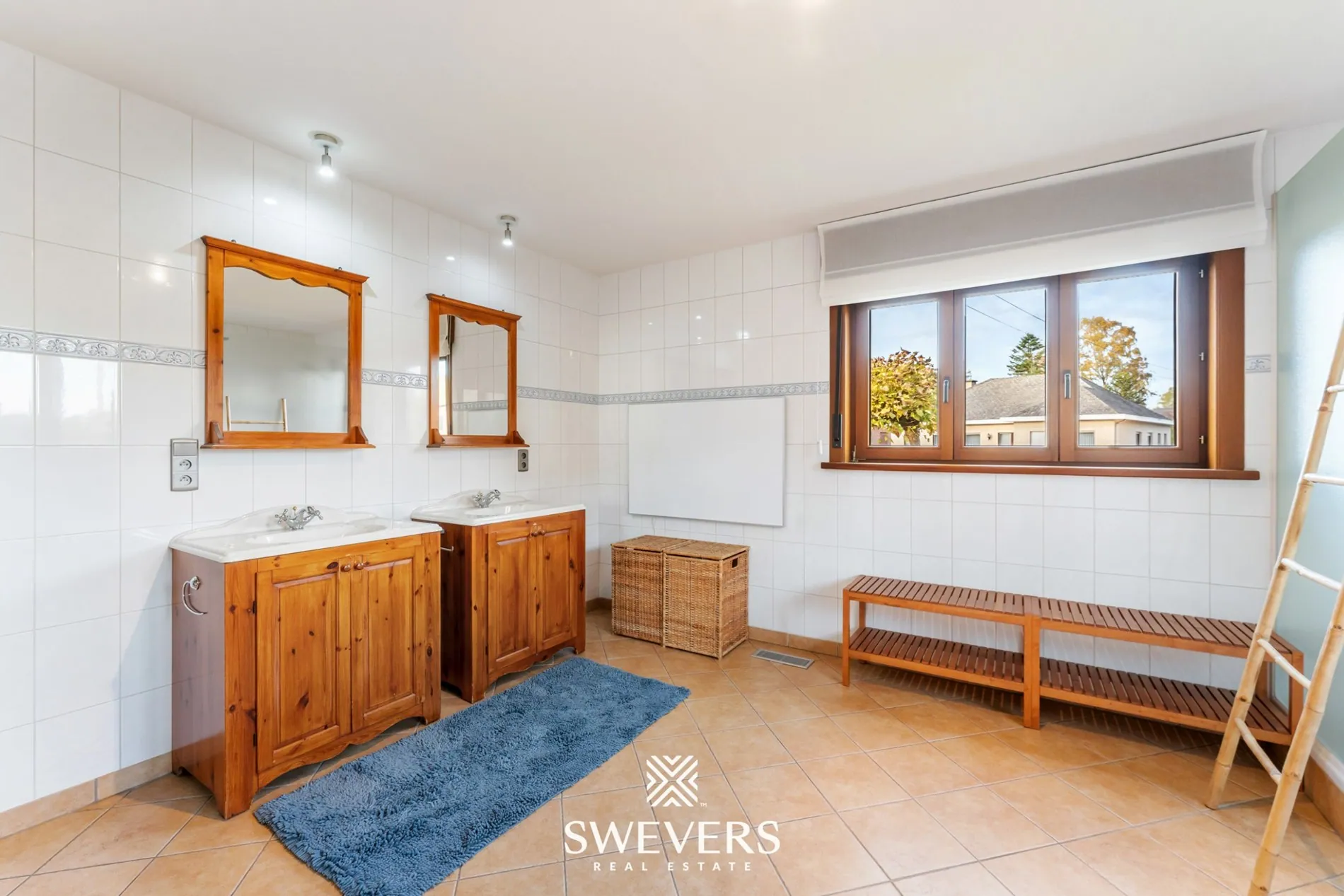 Bij binnenkomst verwelkomt een praktische hal u als centrale verbinding naar alle ruimtes. Links vindt u een gastentoilet en een ruime slaapkamer van bijna 21 m², ideaal als masterbedroom of voor wie gelijkvloers wenst te wonen. De royale badkamer (20,7 m²) met ligbad, douche en dubbele wastafel grenst aan een handige berging waar wasmachine, droogkast en kastruimte hun plaats vinden.