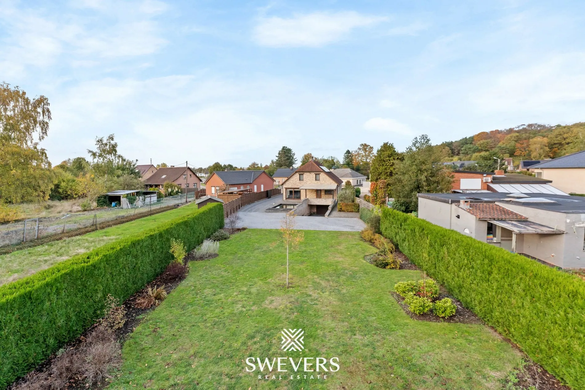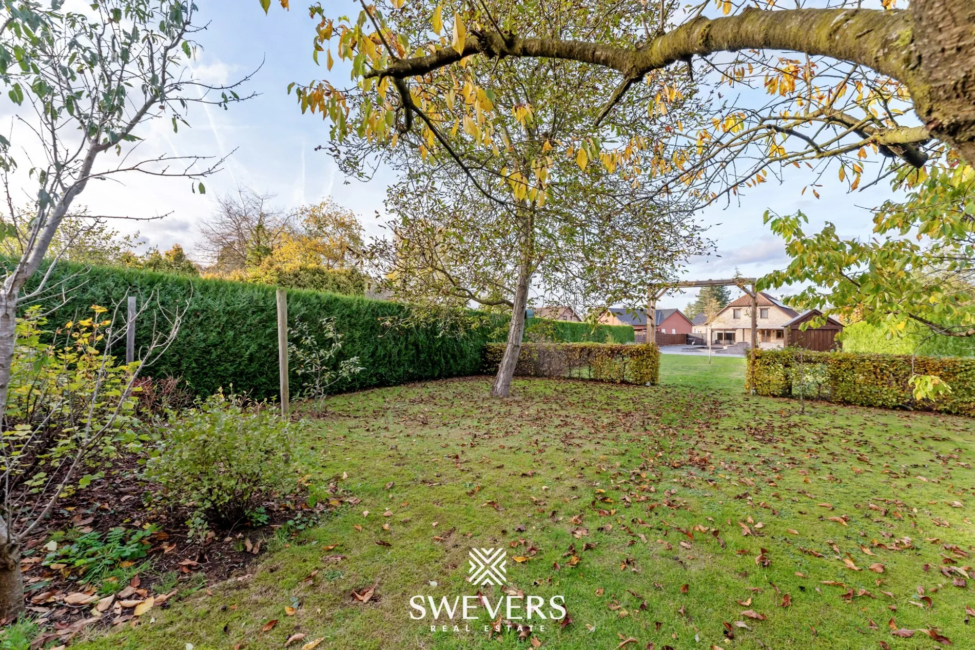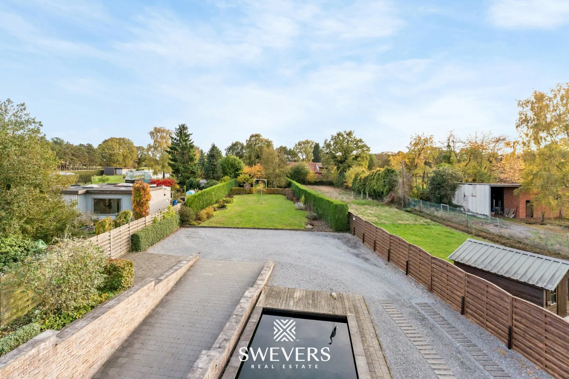Het zuidgerichte perceel zorgt voor optimale lichtinval en maakt van het terras een natuurlijke verlenging van de leefruimte. De open bebouwing garandeert privacy en een gevoel van ruimte rondom de woning.
