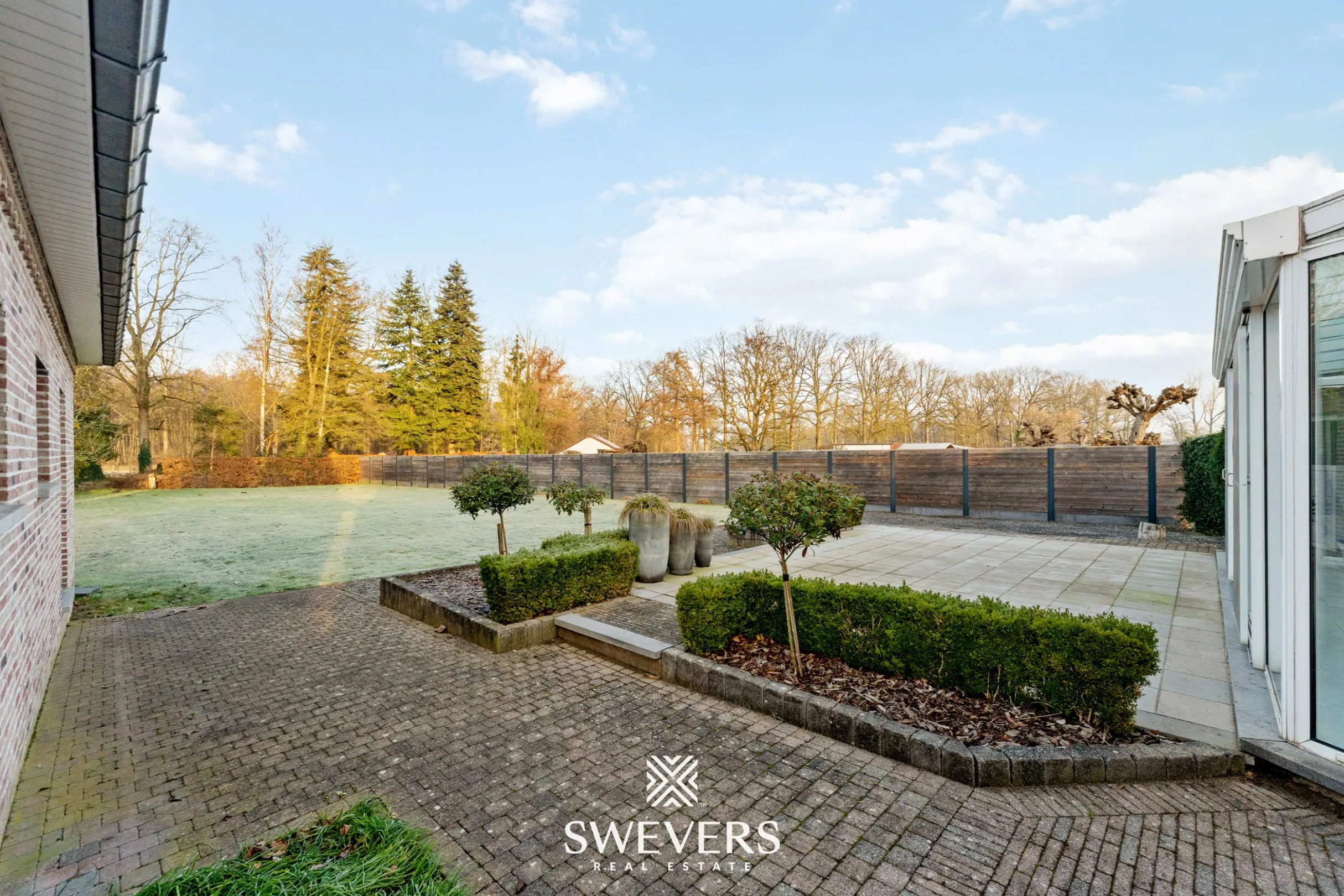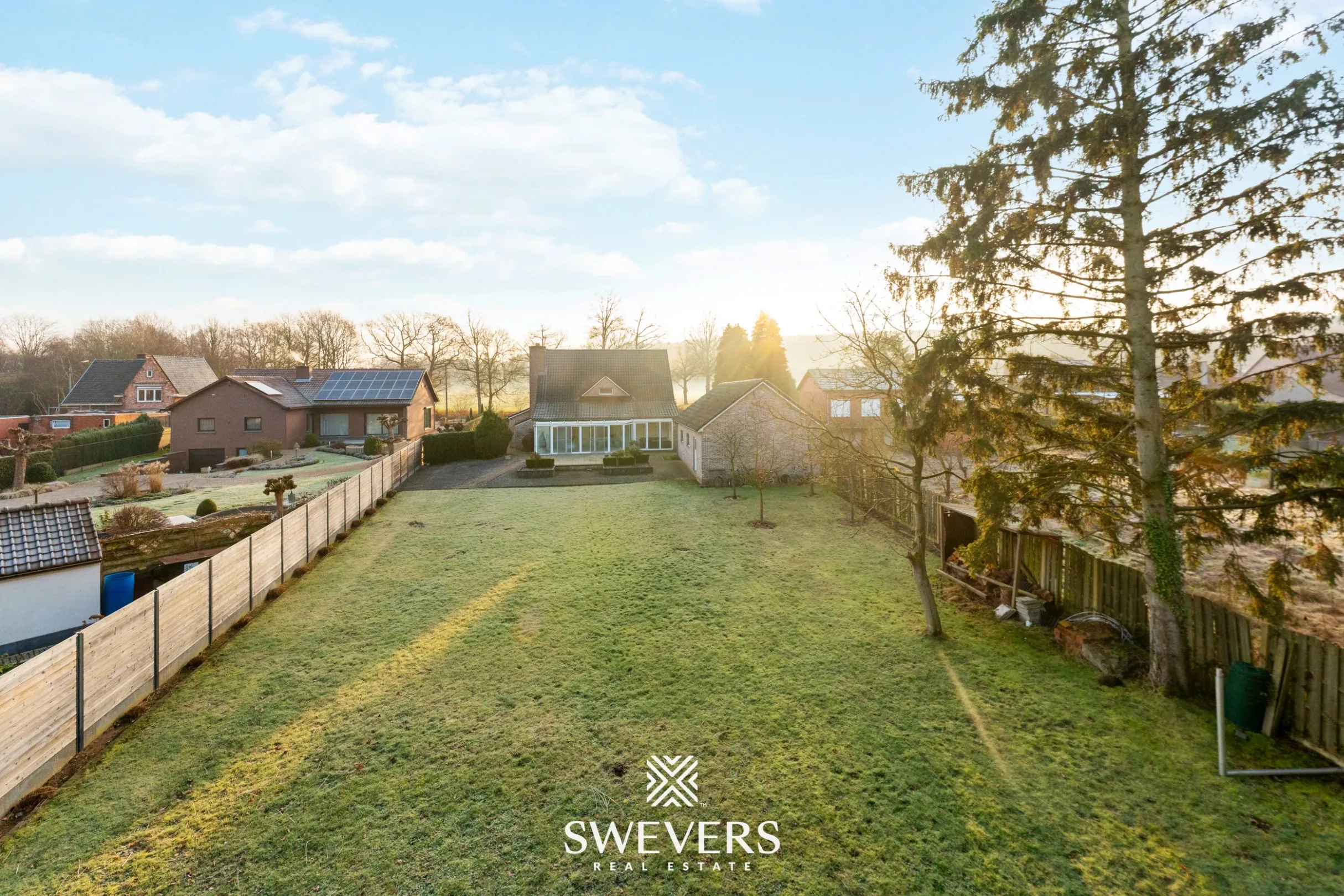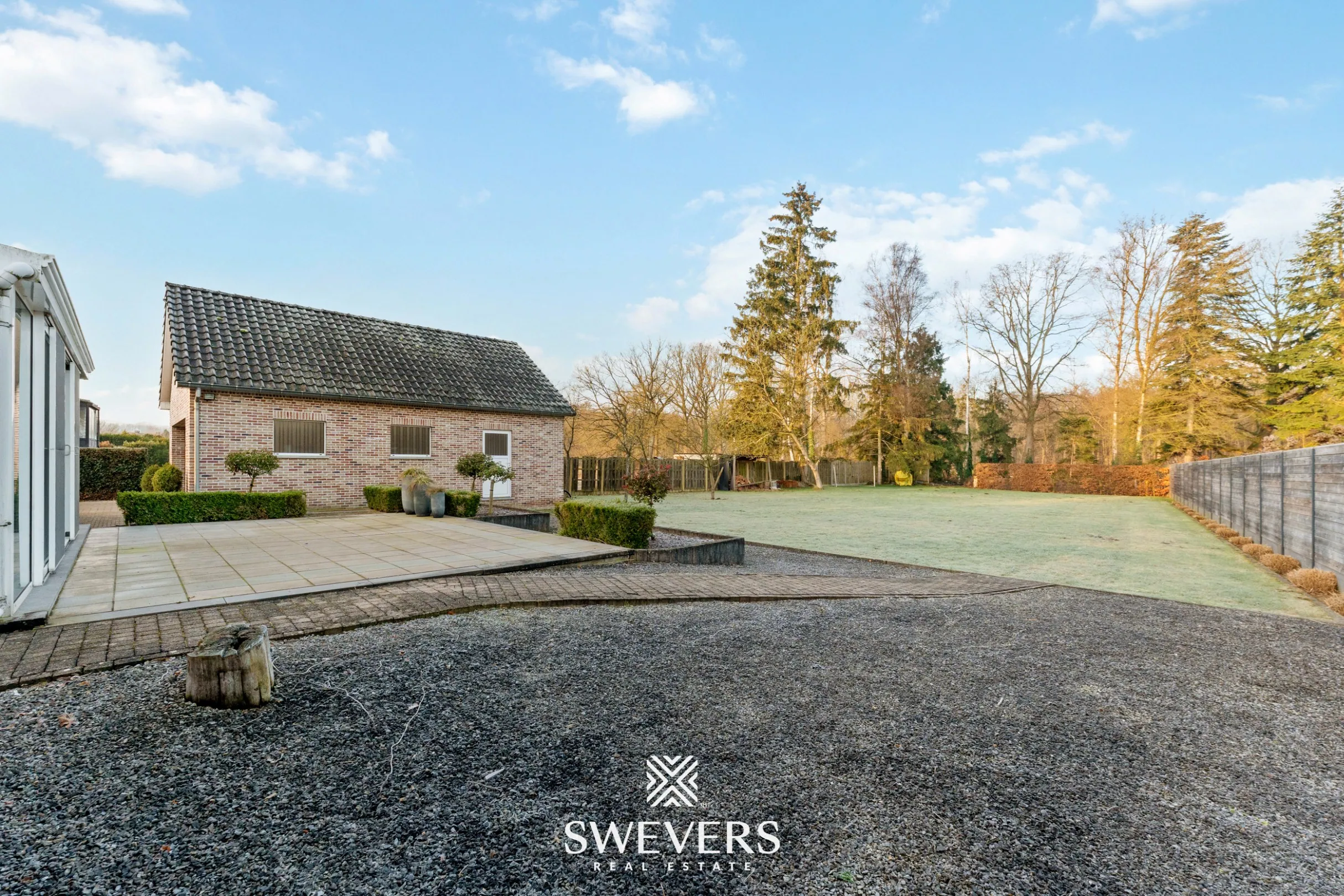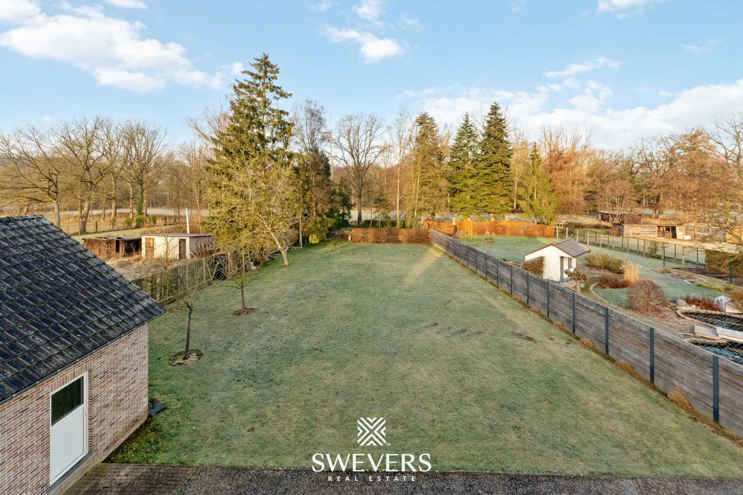 Met een perceeloppervlakte van 23a78ca en een noordwestelijke oriëntatie geniet je hier van middag- en avondzon, ideaal voor wie graag buiten leeft. De diepe tuin biedt alle ruimte voor kinderen om te ravotten, of voor een moestuin, siertuin of zelfs een klein dierenverblijf. De aanwezige veranda vormt het ideale tussenschakel tussen binnen en buiten, en laat je elk seizoen genieten van het uitzicht op het groen.