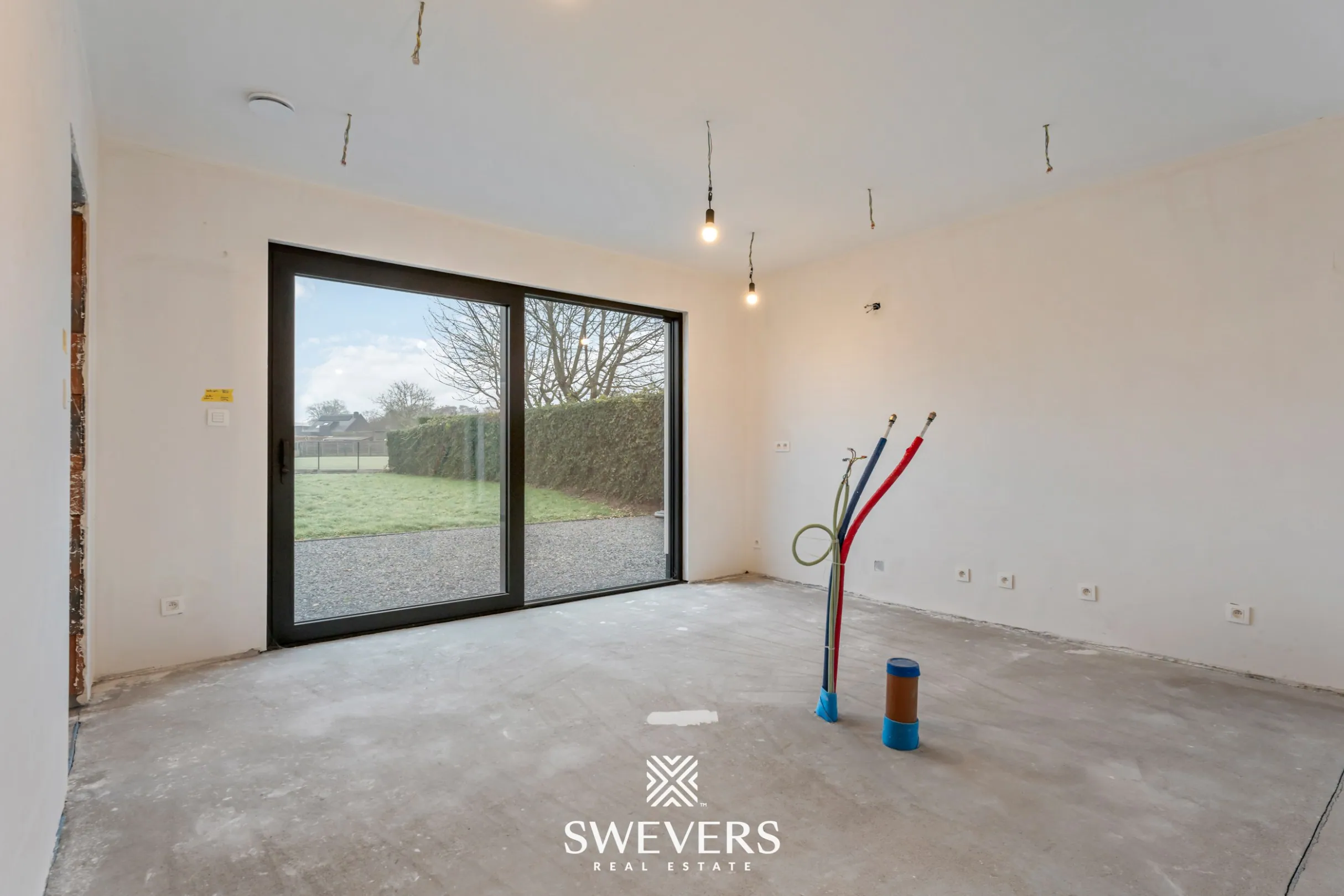 met het oog op comfort, duurzaamheid en modern wonen. De totale bewoonbare oppervlakte van 154 m² is verdeeld over twee volwaardige verdiepingen. Overal is er vloerverwarming voorzien, aangedreven door een energiezuinige warmtepomp. Zonnepanelen en een ventilatiesysteem D zorgen mee voor een duurzame en gezonde woonomgeving. Dankzij de casco+ afwerking zijn de technieken reeds voorzien, wat het afwerkingsproces vergemakkelijkt.