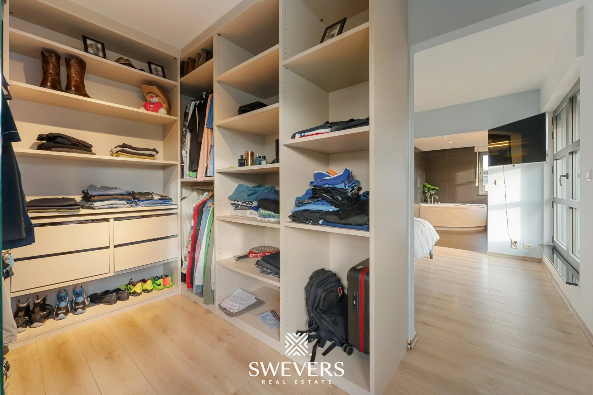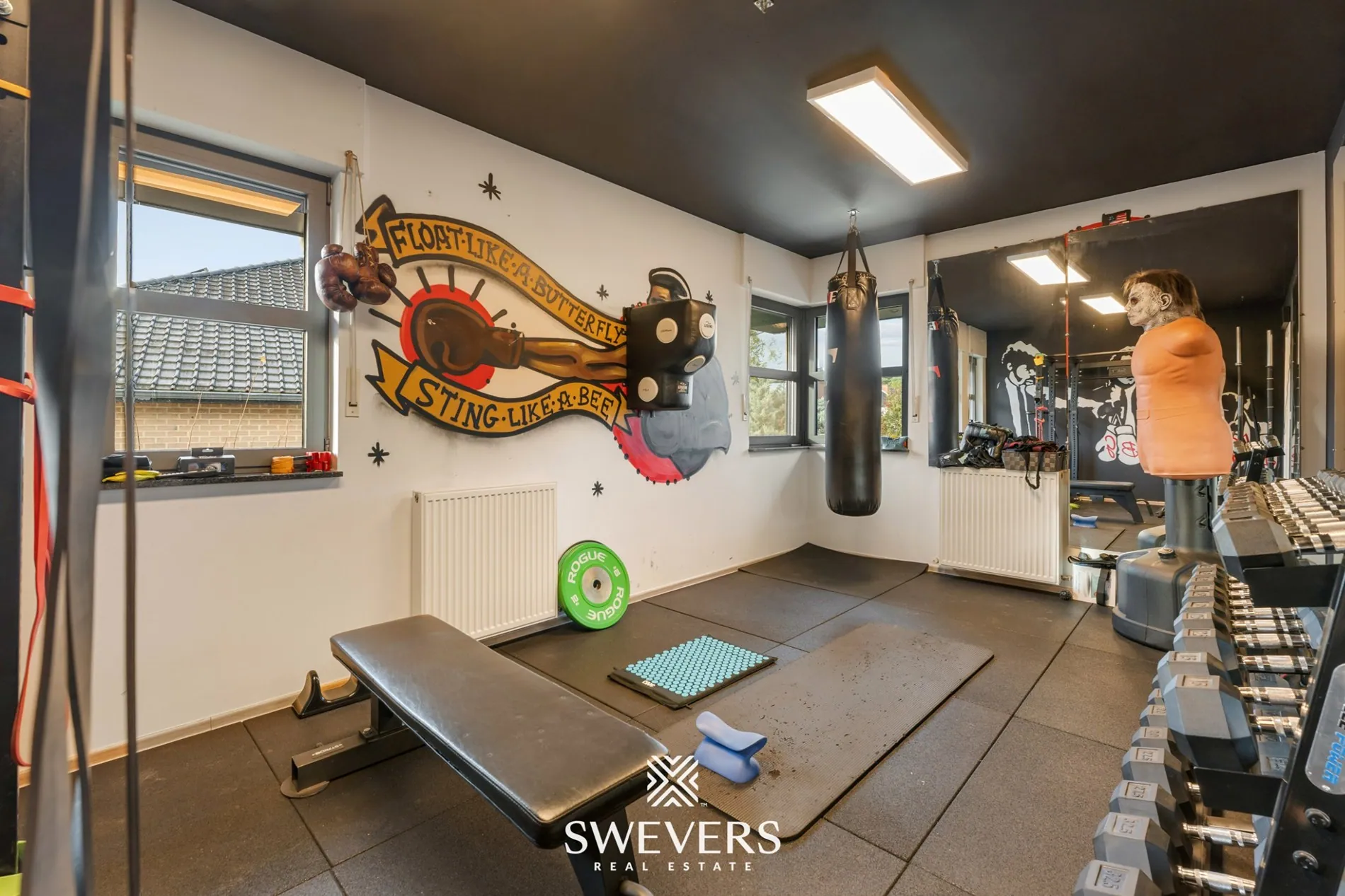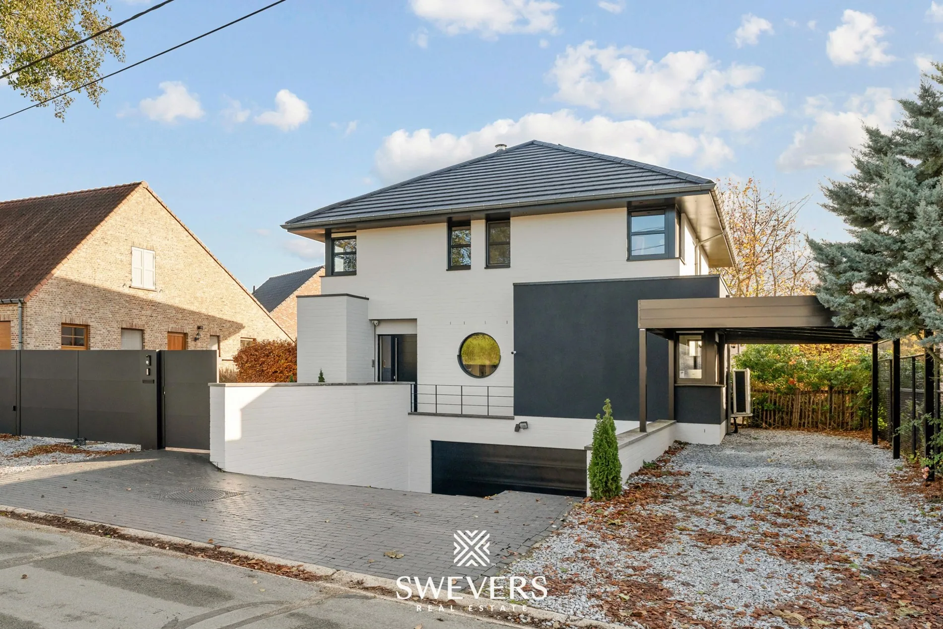 Praktisch comfort vind je op elk niveau. De woning beschikt over een inpandige ondergrondse garage voor twee wagens met automatische sectionale poort, aangevuld met een carport uit 2024. De volledige onderkeldering van 45,93 m² biedt extra ruimte voor opslag, hobby’s of een praktische werkruimte. Op de verdieping bevinden zich drie slaapkamers, waarvan één momenteel ingericht is als fitnessruimte en de master bedroom uitblinkt met een eigen badkamer met ligbad én een ruime dressing. Daarnaast is er een tweede moderne badkamer uit 2023 met inloopdouche, waarvan de vloer eveneens in 2023 werd vernieuwd — ideaal voor een gezin dat comfort en efficiëntie hoog inschat.