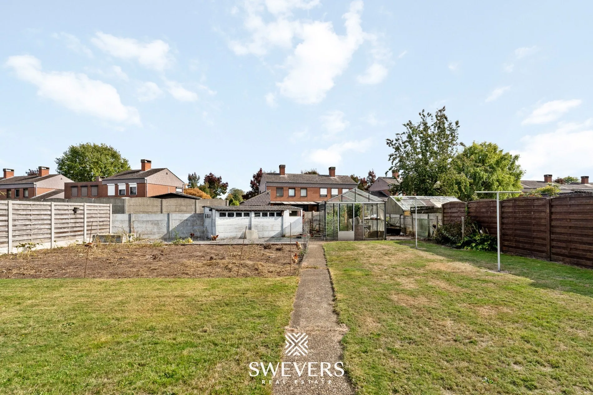 In het nachtgedeelte, dat zich op een halve verdieping bevindt, zijn er drie volwaardige slaapkamers. De grootste slaapkamer meet 16 m², gevolgd door een kamer van 15 m² en een derde van 10,5 m². Elke kamer beschikt over voldoende lichtinval en leent zich perfect voor een kinderkamer, thuiskantoor of logeerkamer. De centrale badkamer ligt naast de keuken maar gunstig ten opzichte van de slaapkamers en is functioneel ingericht met de basisvoorzieningen.